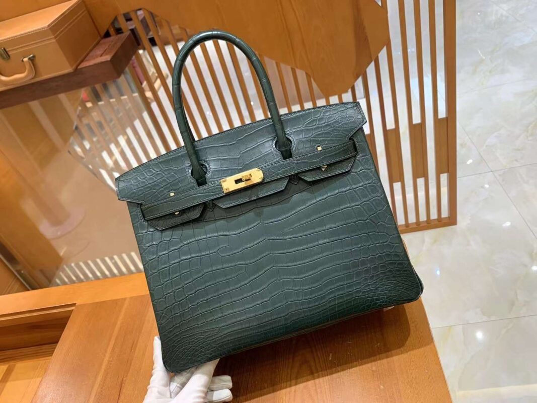 Birkin 30cm Pine and Cypress green First-class Nile crocodile leather. Gold buckle Imported raw materials. Fully hand-sewn