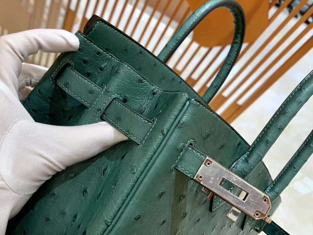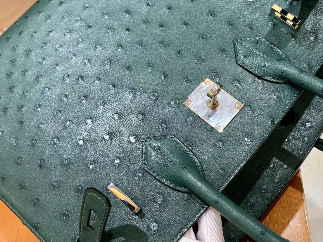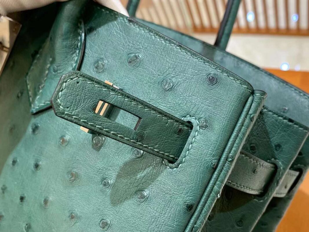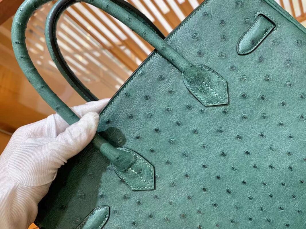 Birkin 30cm Malachite Green Imported South African KK ostrich leather. French beeswax thread. 100% hand-sewn
