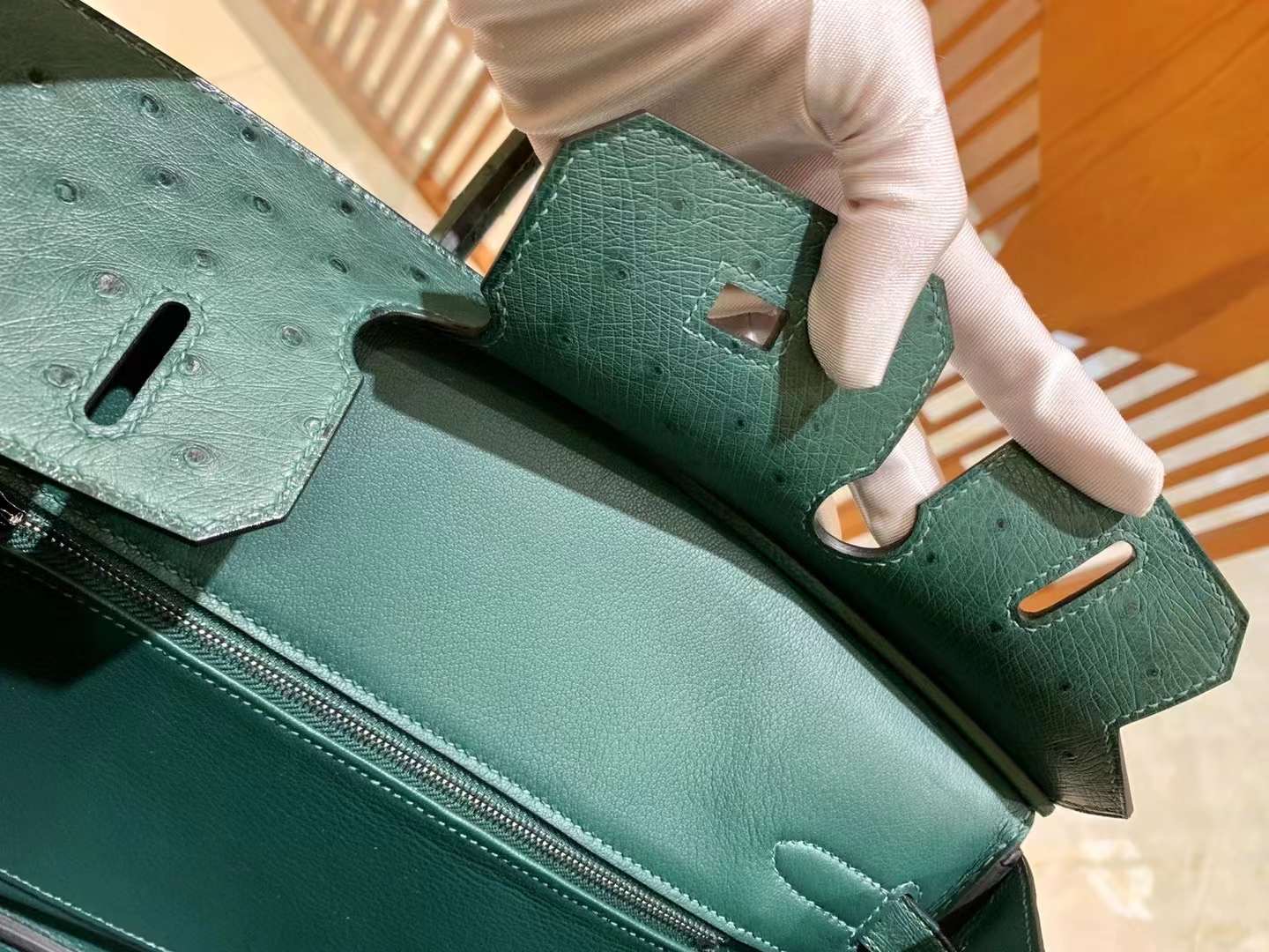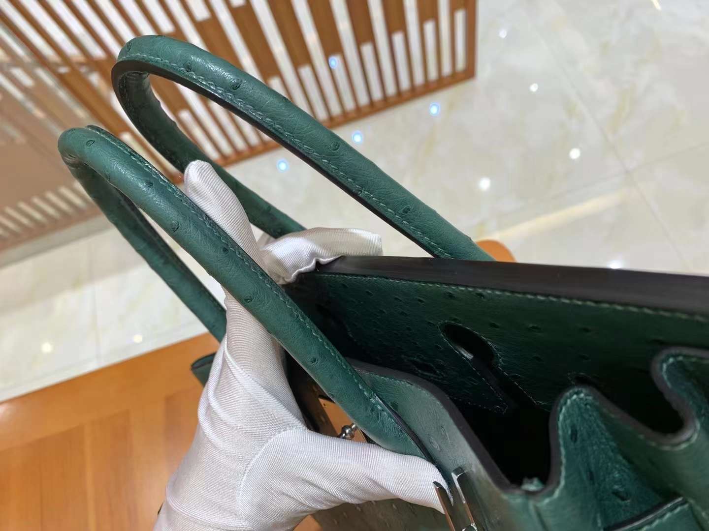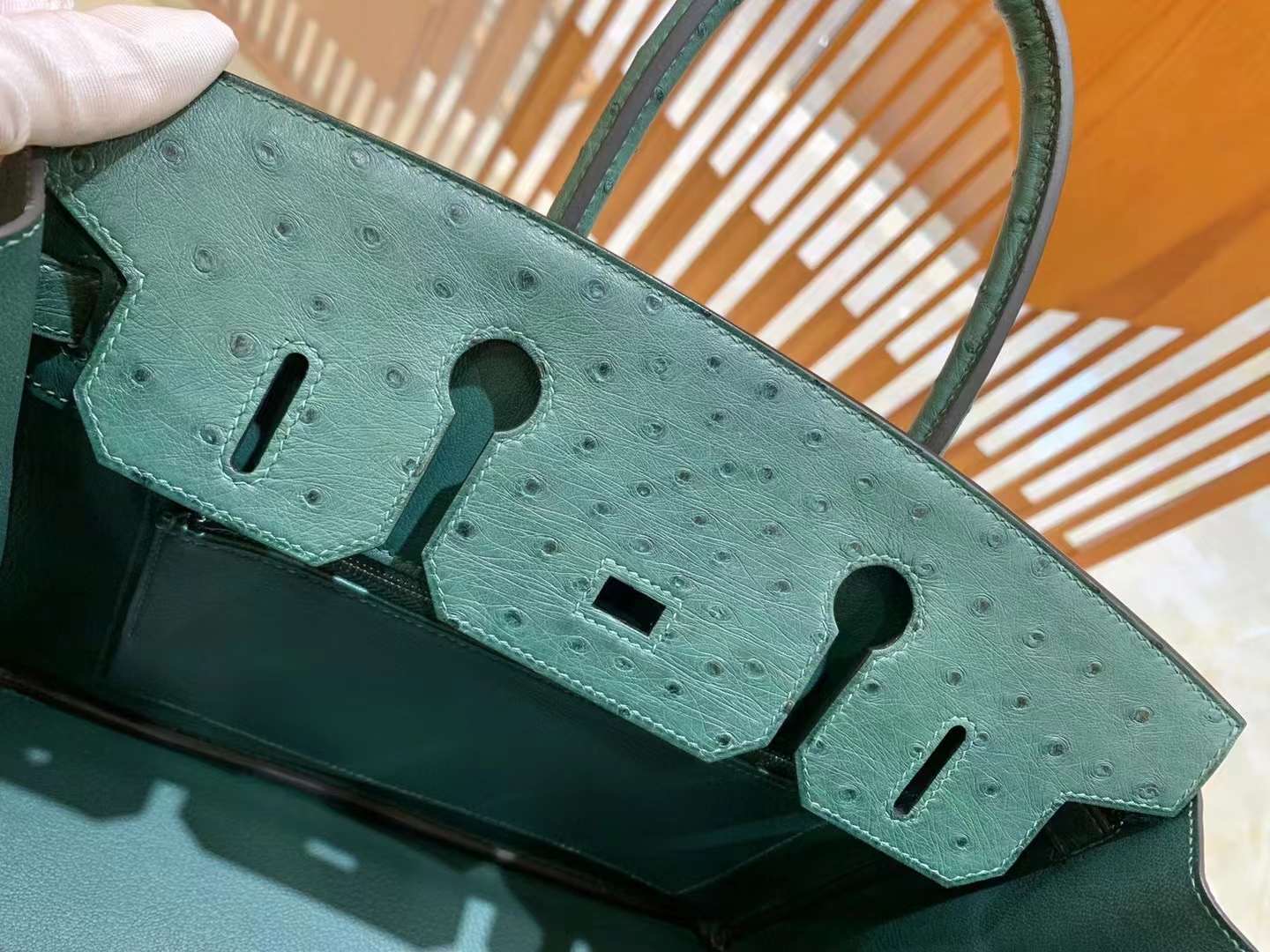 Birkin 30cm Malachite Green Imported South African KK ostrich leather. French beeswax thread. 100% hand-sewn