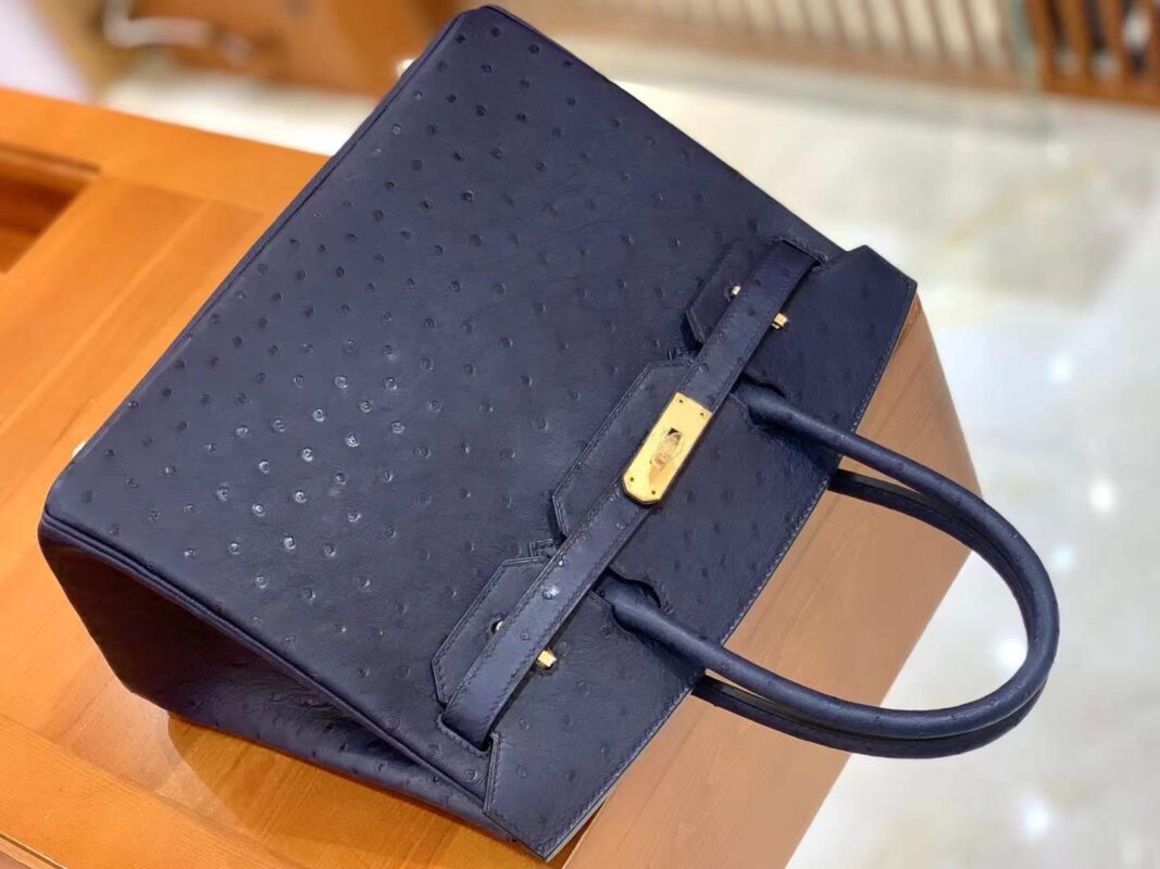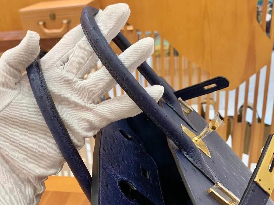Birkin 30cm Maltese Blue Imported KK ostrich leather. French beeswax thread. 100% hand-sewn