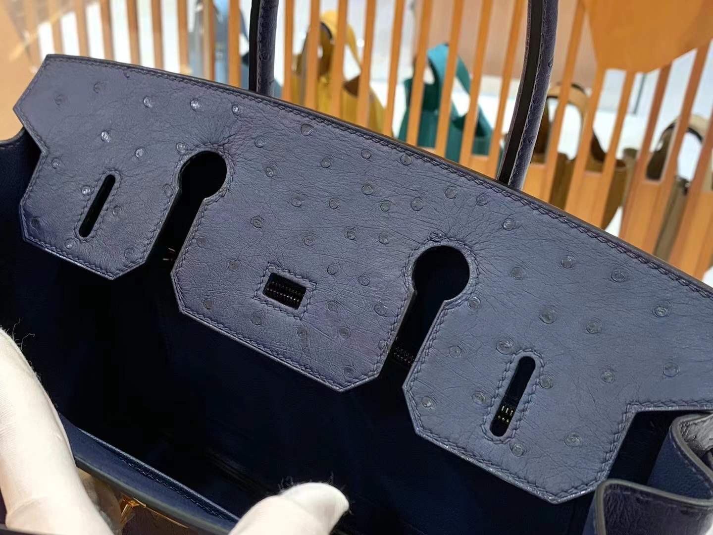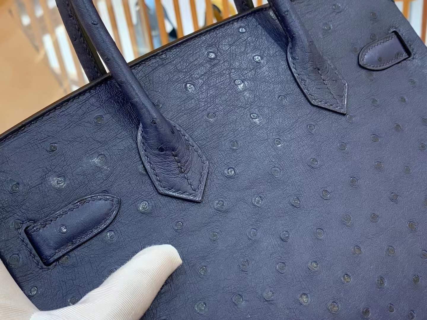 Birkin 30cm Maltese Blue Imported KK ostrich leather. French beeswax thread. 100% hand-sewn