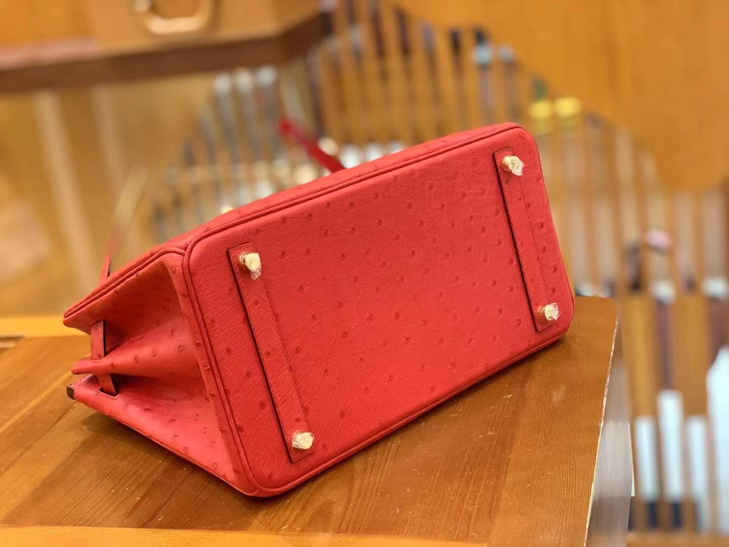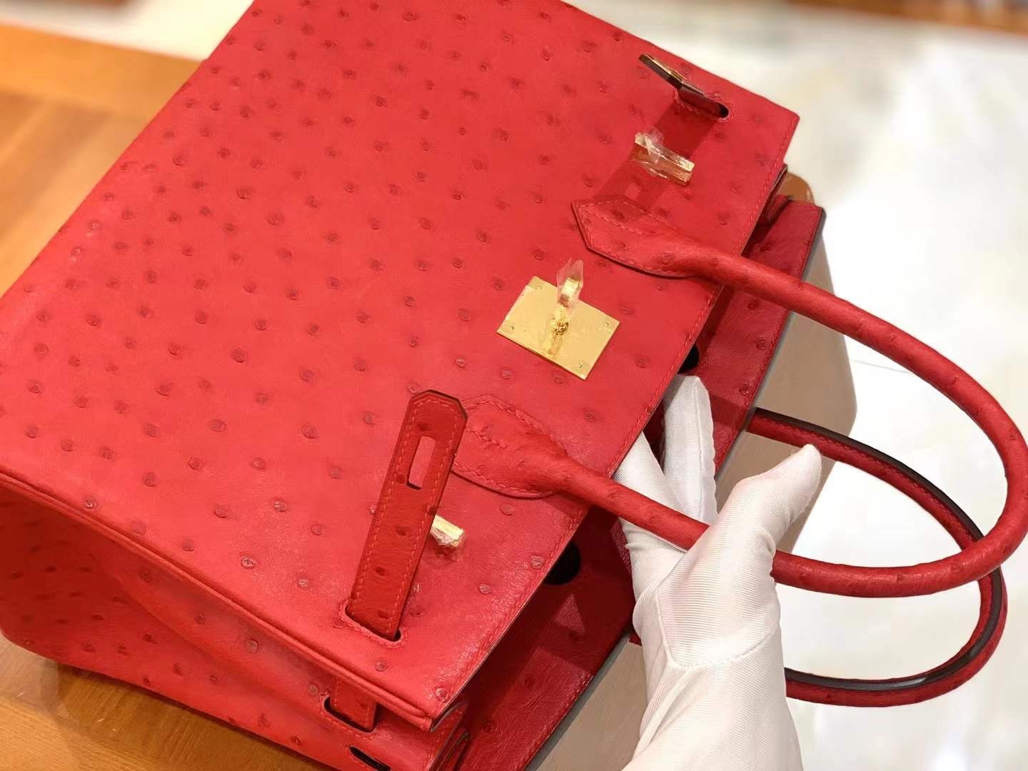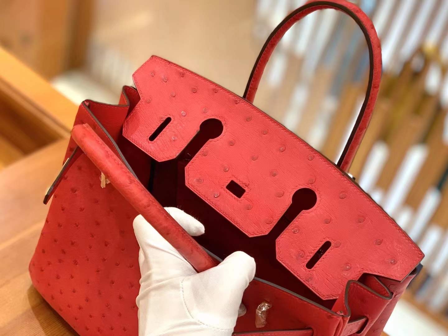 Birkin 30cm Red Imported KK ostrich leather. French beeswax thread. 100% hand-sewn