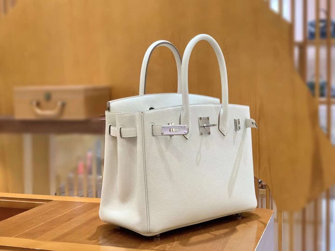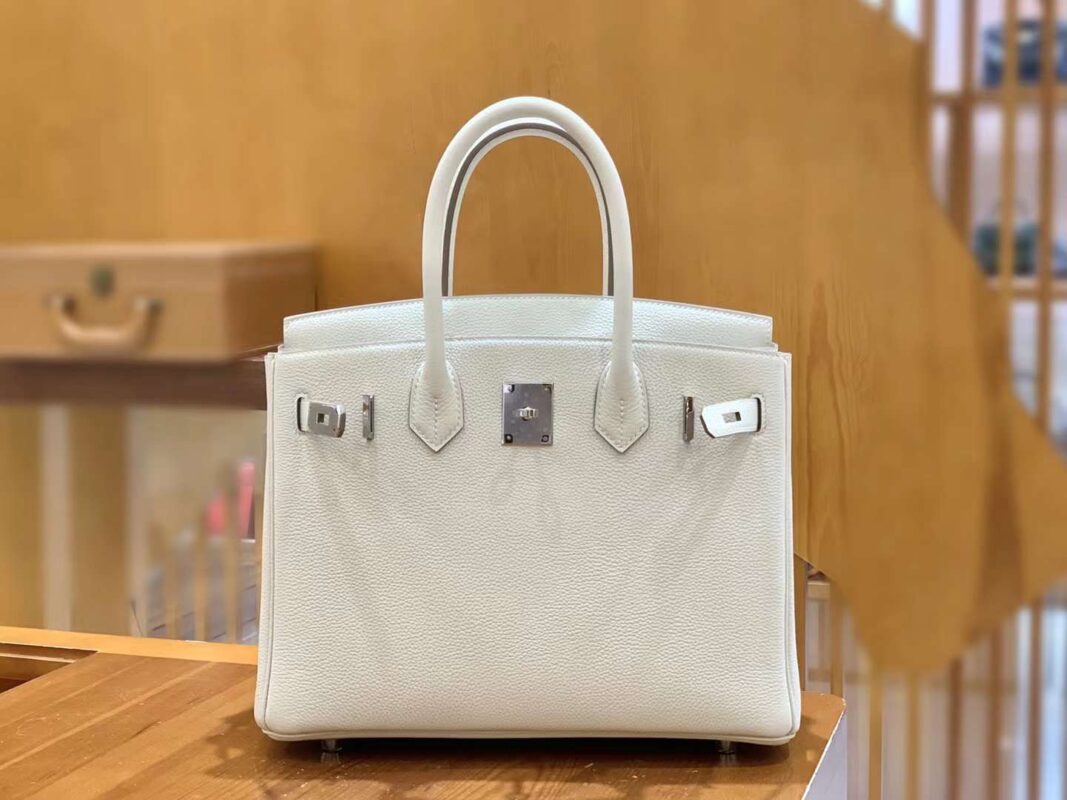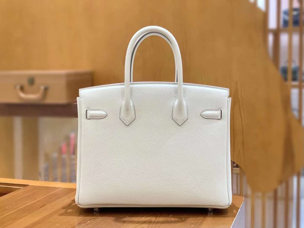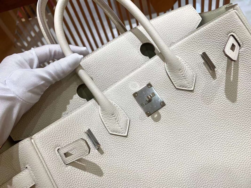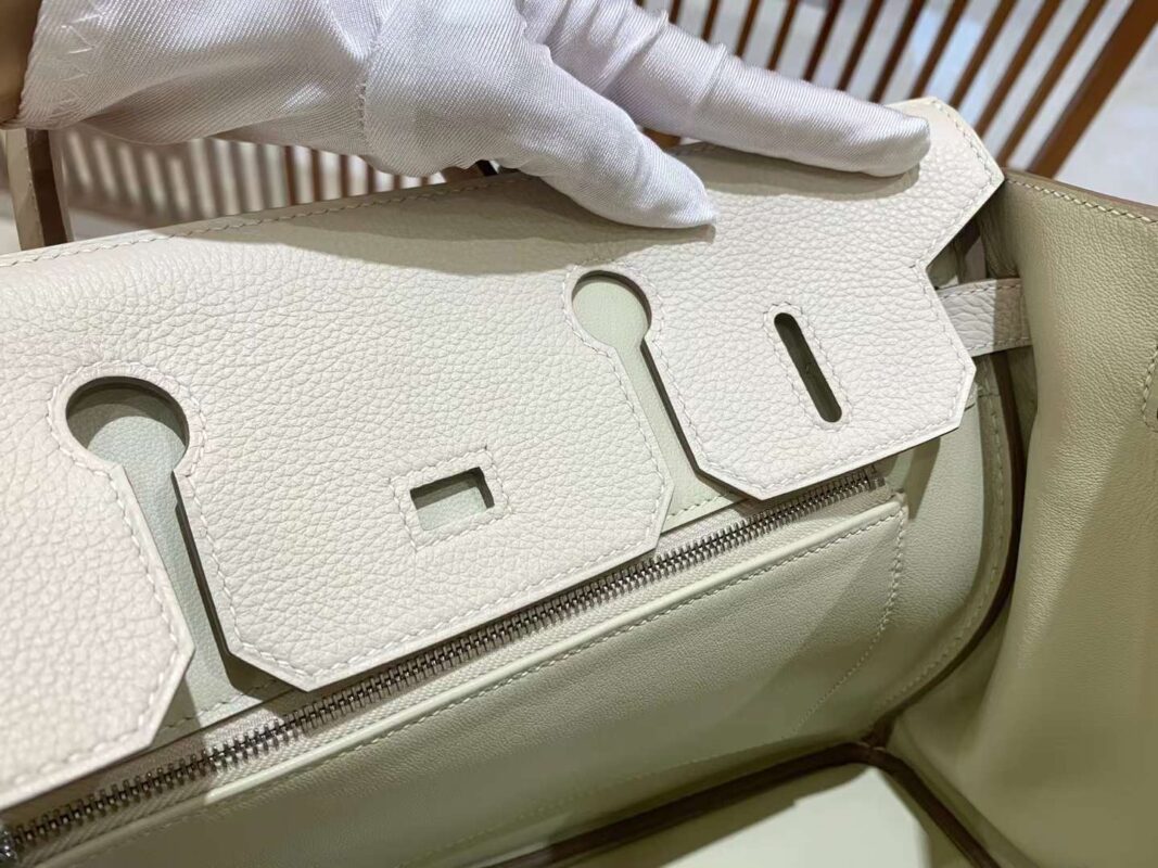 BK30cm Craie. Silver buckle Imported togo cowhide. French original beeswax thread. Fully hand-sewn