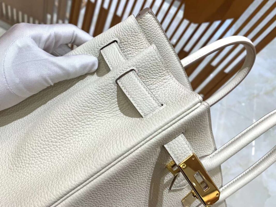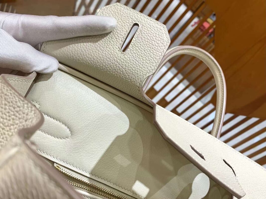 BK30cm Craie. Platinum Buckle Imported togo cowhide. French original beeswax thread. Fully hand-sewn
