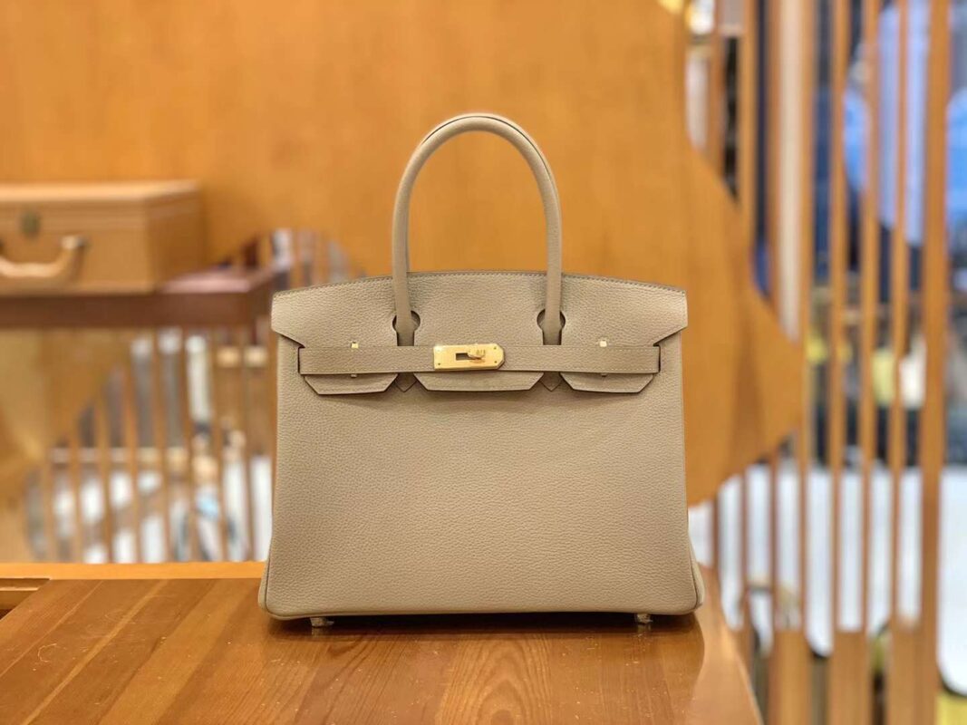 BK30cm Windbreaker Gray. Gold buckle Imported togo cowhide. French original beeswax thread. Fully hand-sewn