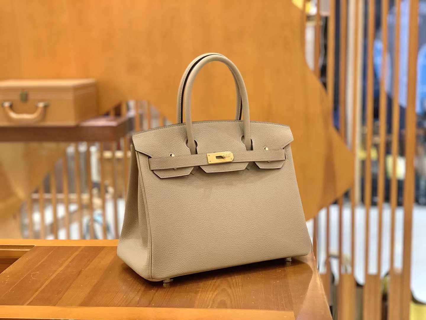 BK30cm Windbreaker Gray. Gold buckle Imported togo cowhide. French original beeswax thread. Fully hand-sewn