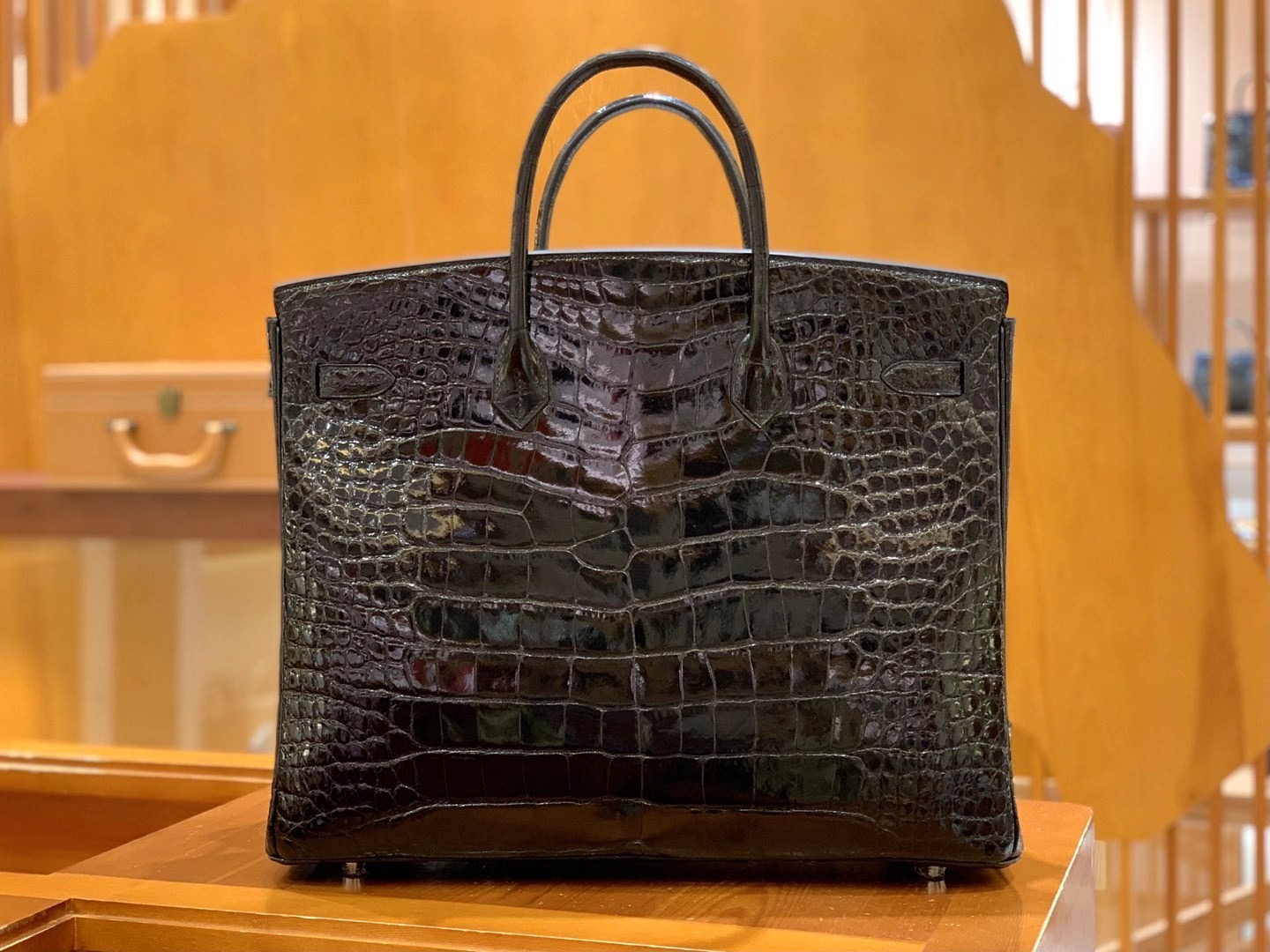 Birkin 40cm Black Silver Buckle Imported first-class American crocodile leather. Fully hand-sewn