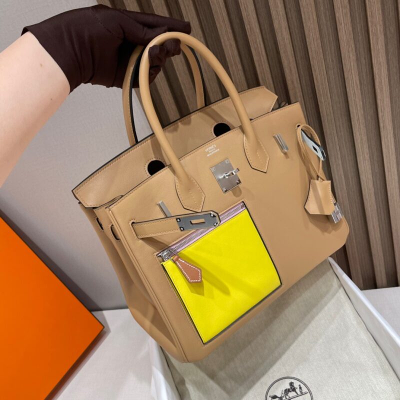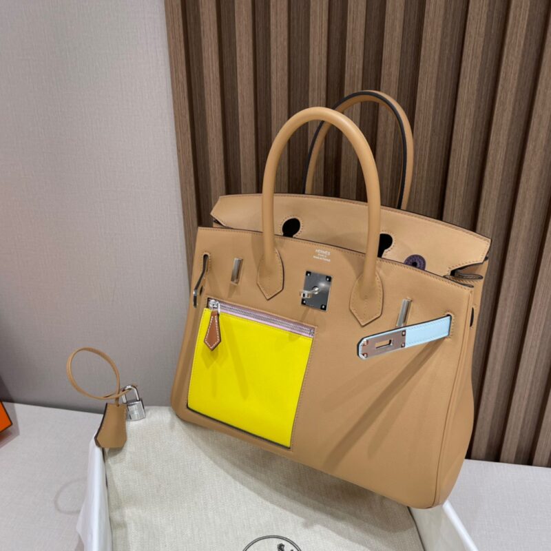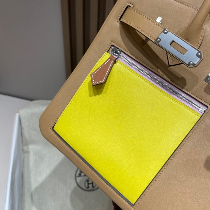 Birkin Colormatic Deformation Bag/Single Pull Bag Another headshot series. The storm screams, the swift leather feels so wow. Add color-blocking elements. All-inclusive swift leather. Front square pocket design makes the whole bag cooler. The back pocket is super convenient to tuck your phone at any time 0M tan/R9 lemon yellow/X9 mallow/T0 fog blue/i2 cream white