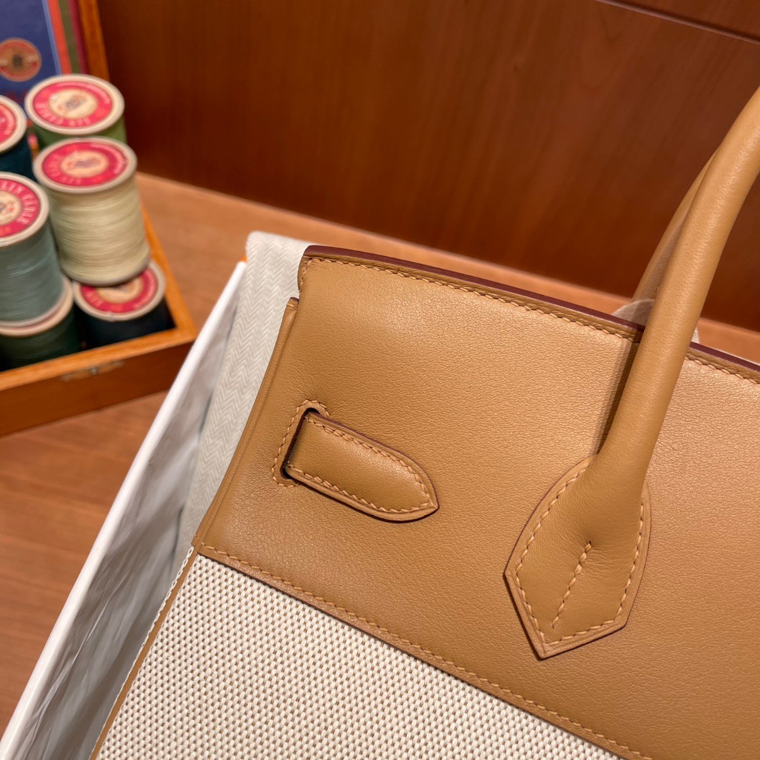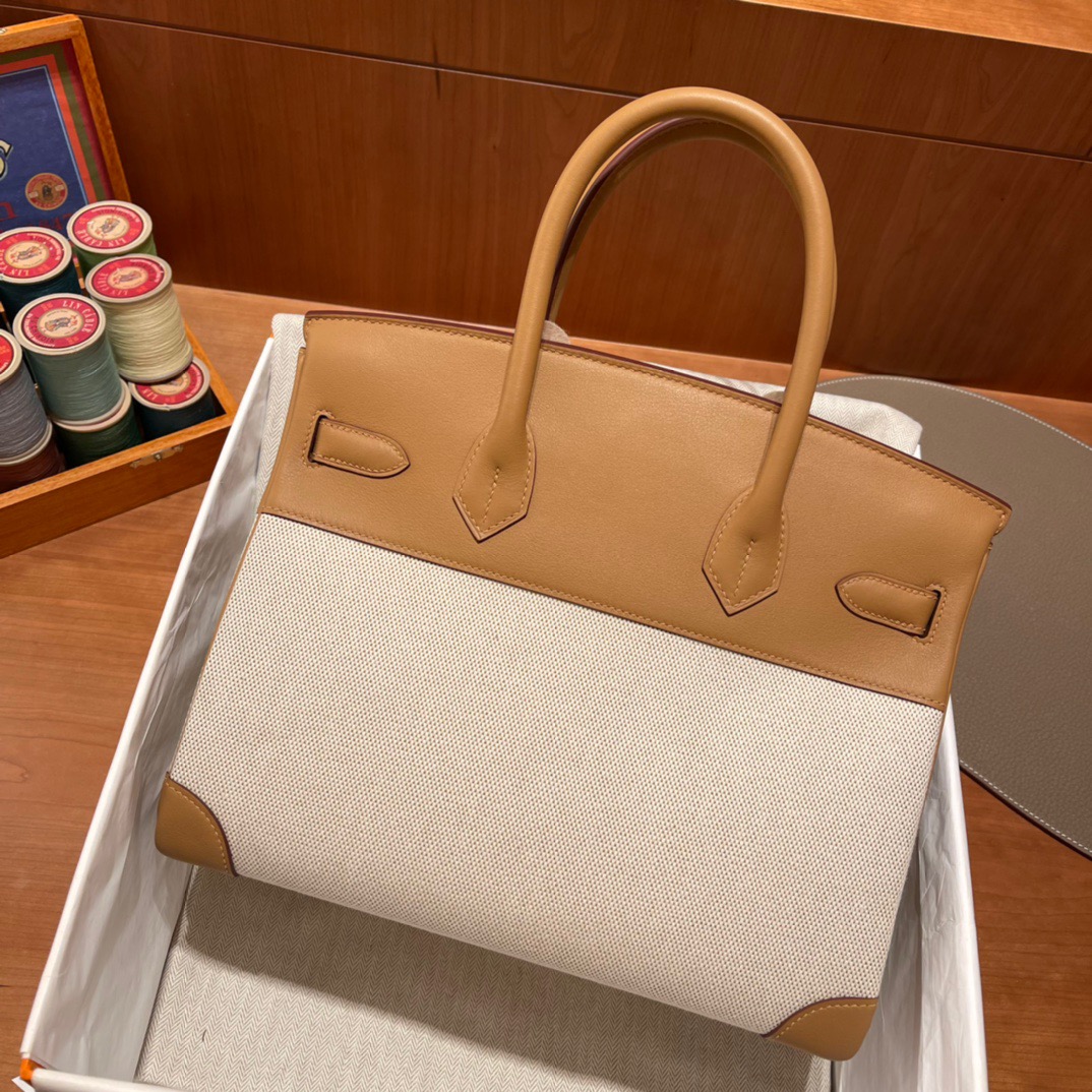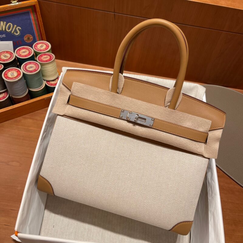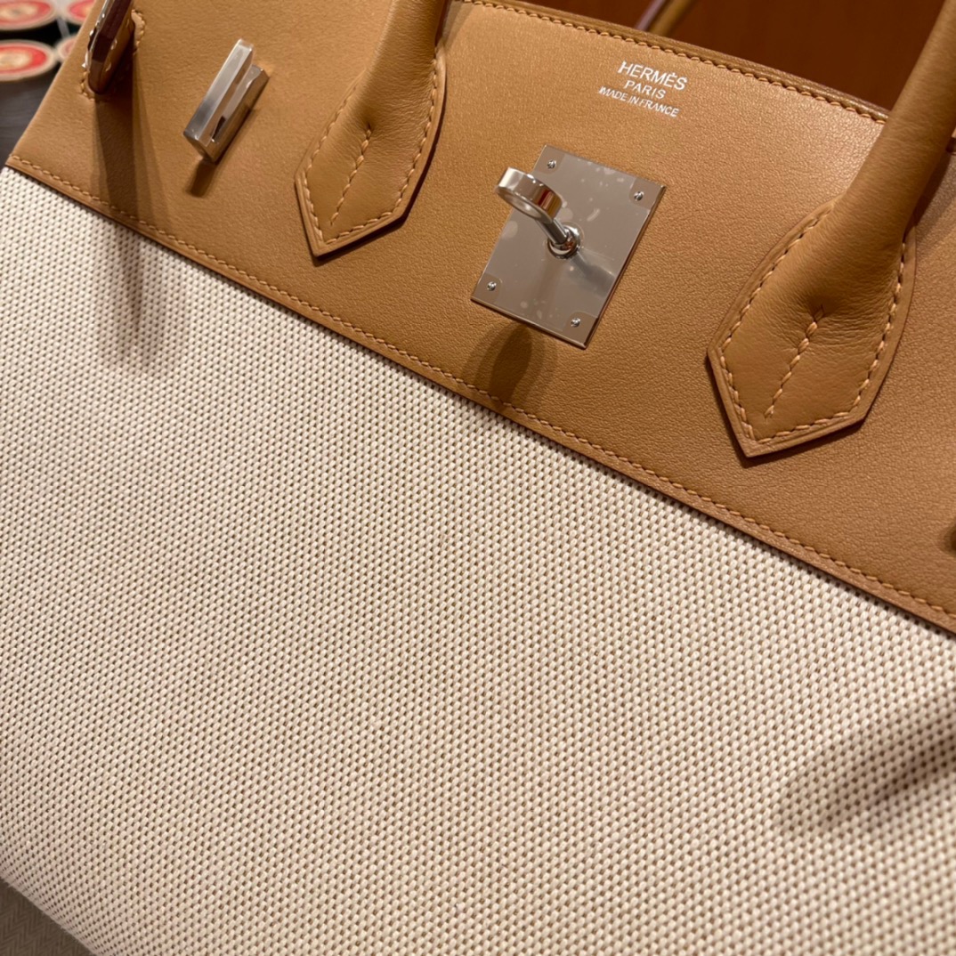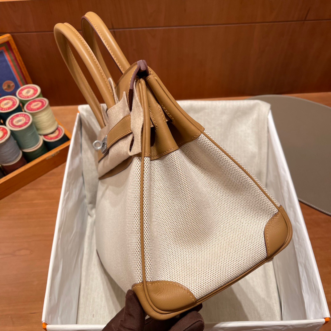 Birkin HAC Canvas and Swift 4B Biscuit (Biscuit), Silver BuckleA youthful Birkin canvas with swift leather. All hand-sewn. The weight of the canvas is lighter.The size customized
