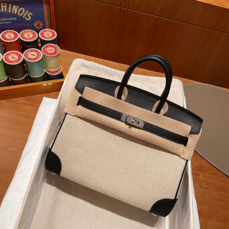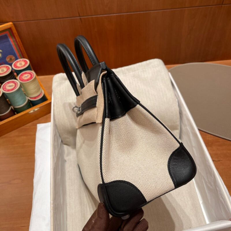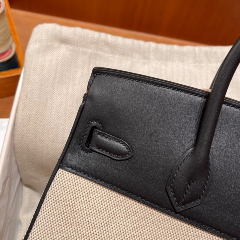 Birkin HAC Canvas&Swift Black, Silver BuckleA youthful Birkin canvas with swift leather. All hand-sewn. The size customized