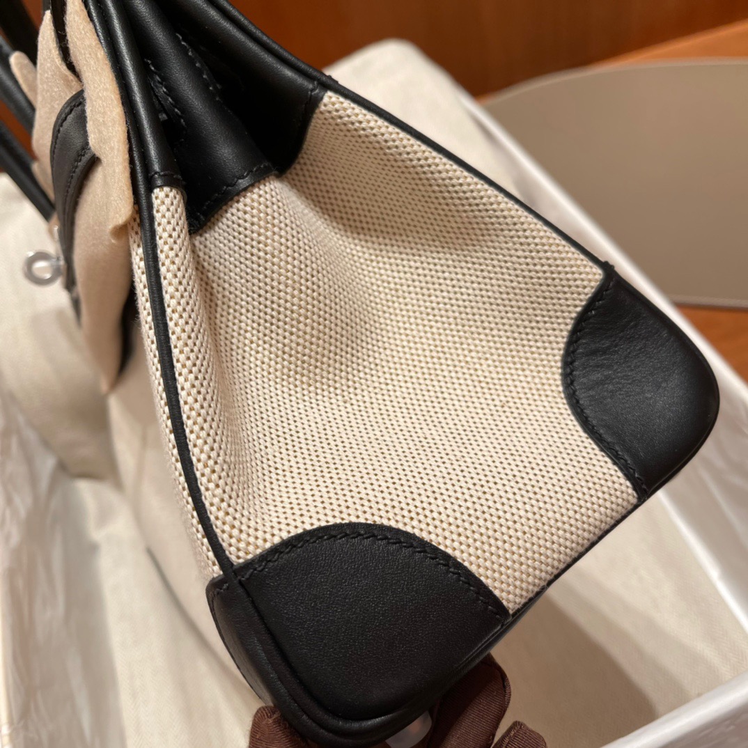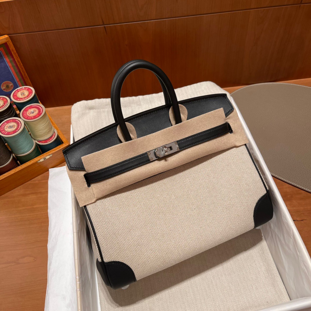 Birkin HAC Canvas&Swift Black, Silver BuckleA youthful Birkin canvas with swift leather. All hand-sewn. The size customized