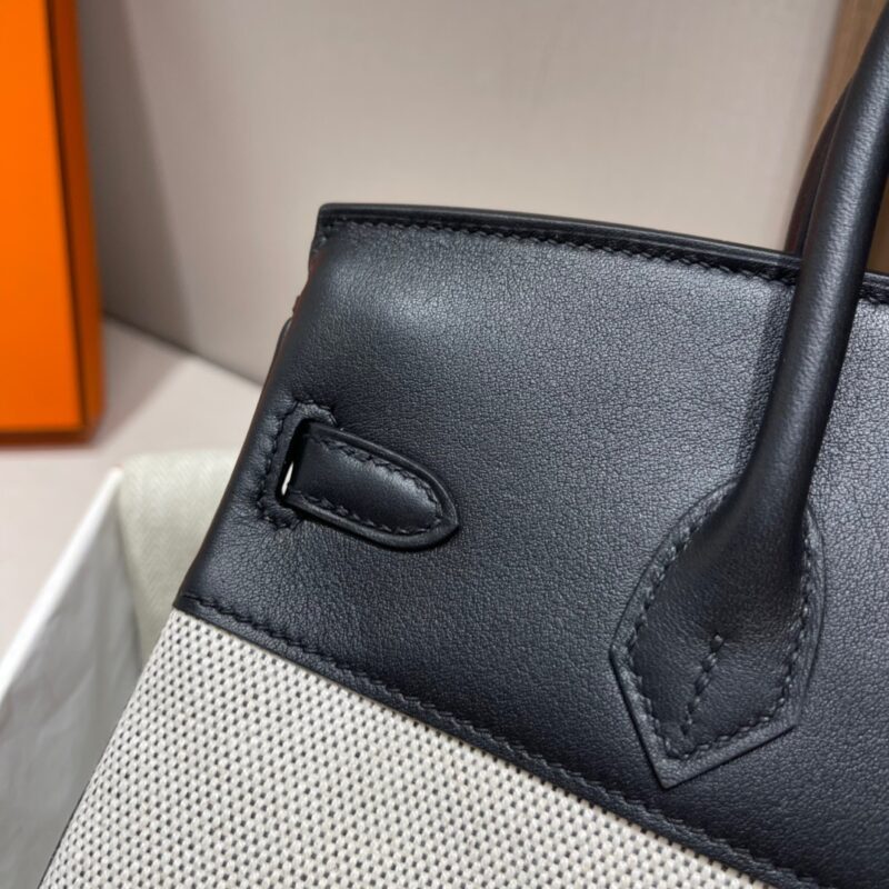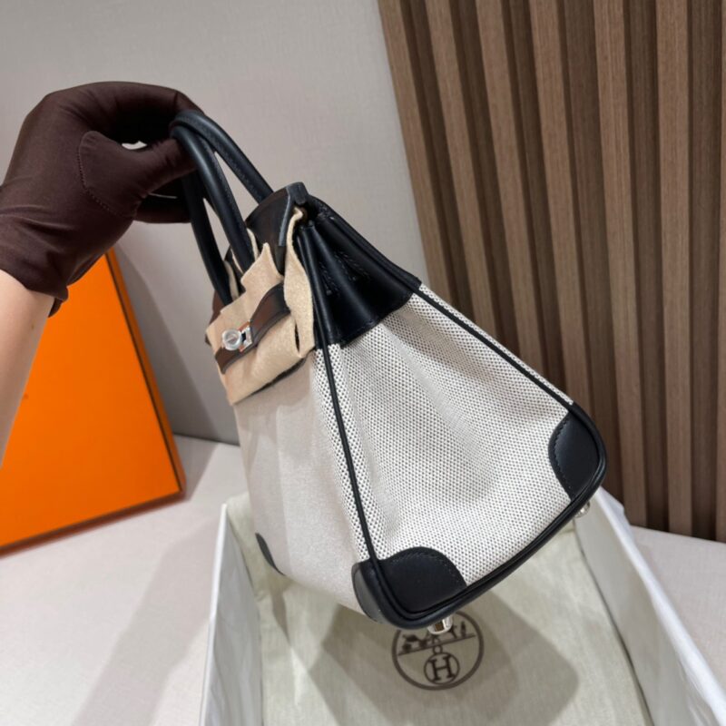 Birkin HAC Canvas&Swift Black, Silver BuckleA youthful Birkin canvas with swift leather. All hand-sewn. The size customized