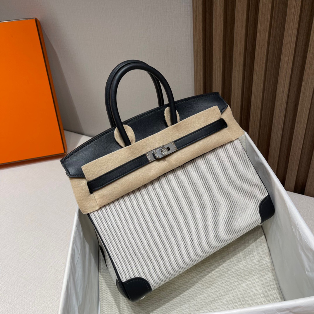 Birkin HAC Canvas&Swift Black, Silver BuckleA youthful Birkin canvas with swift leather. All hand-sewn. The size customized