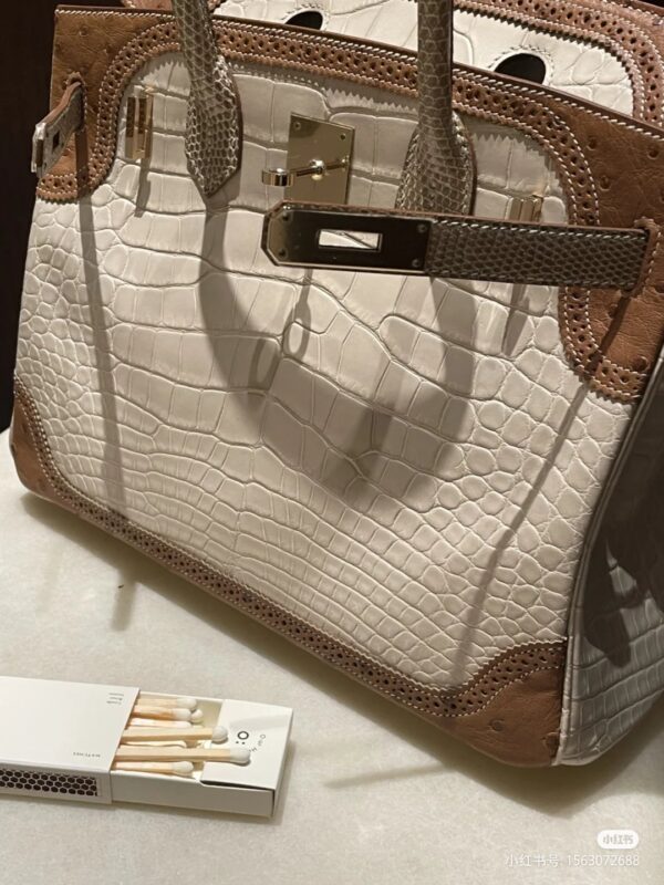 Birkin exclusive bag in mixed leather with 24 gold plated hardware.