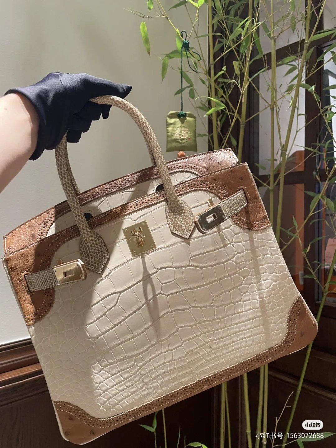 Birkin exclusive bag in mixed leather with 24 gold plated hardware.