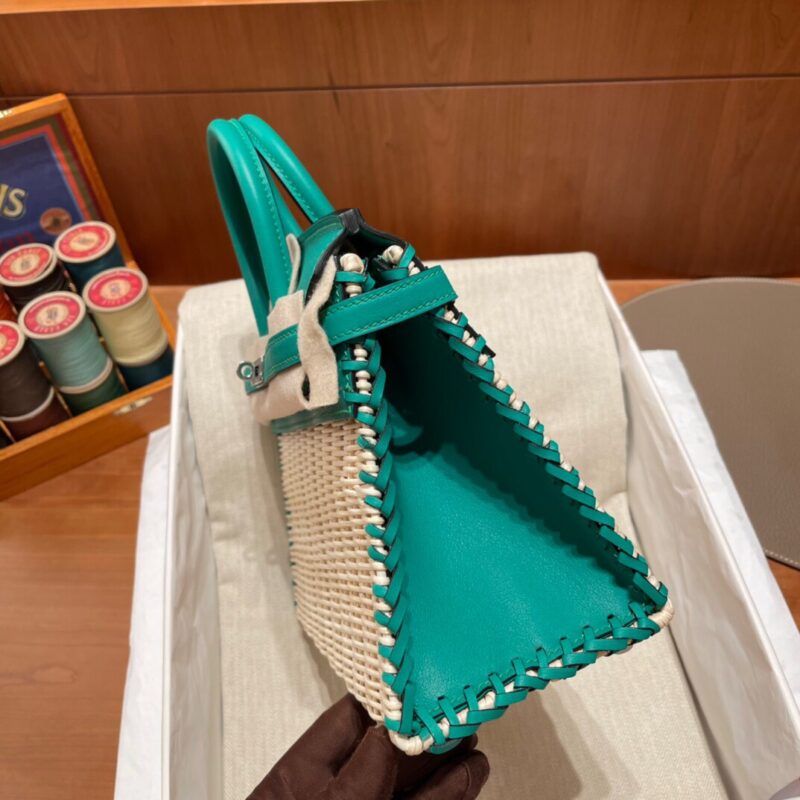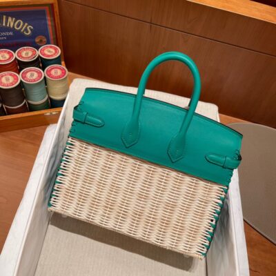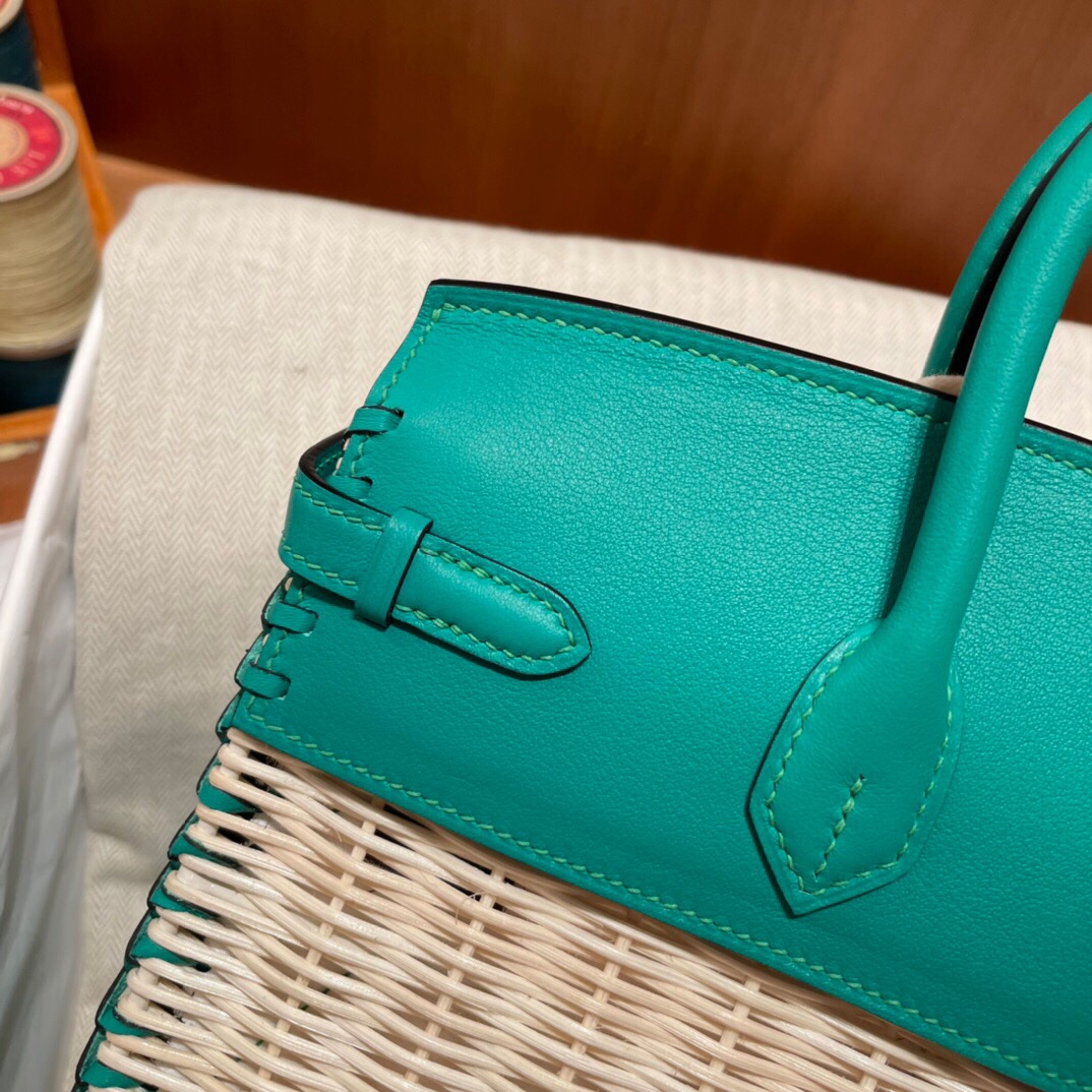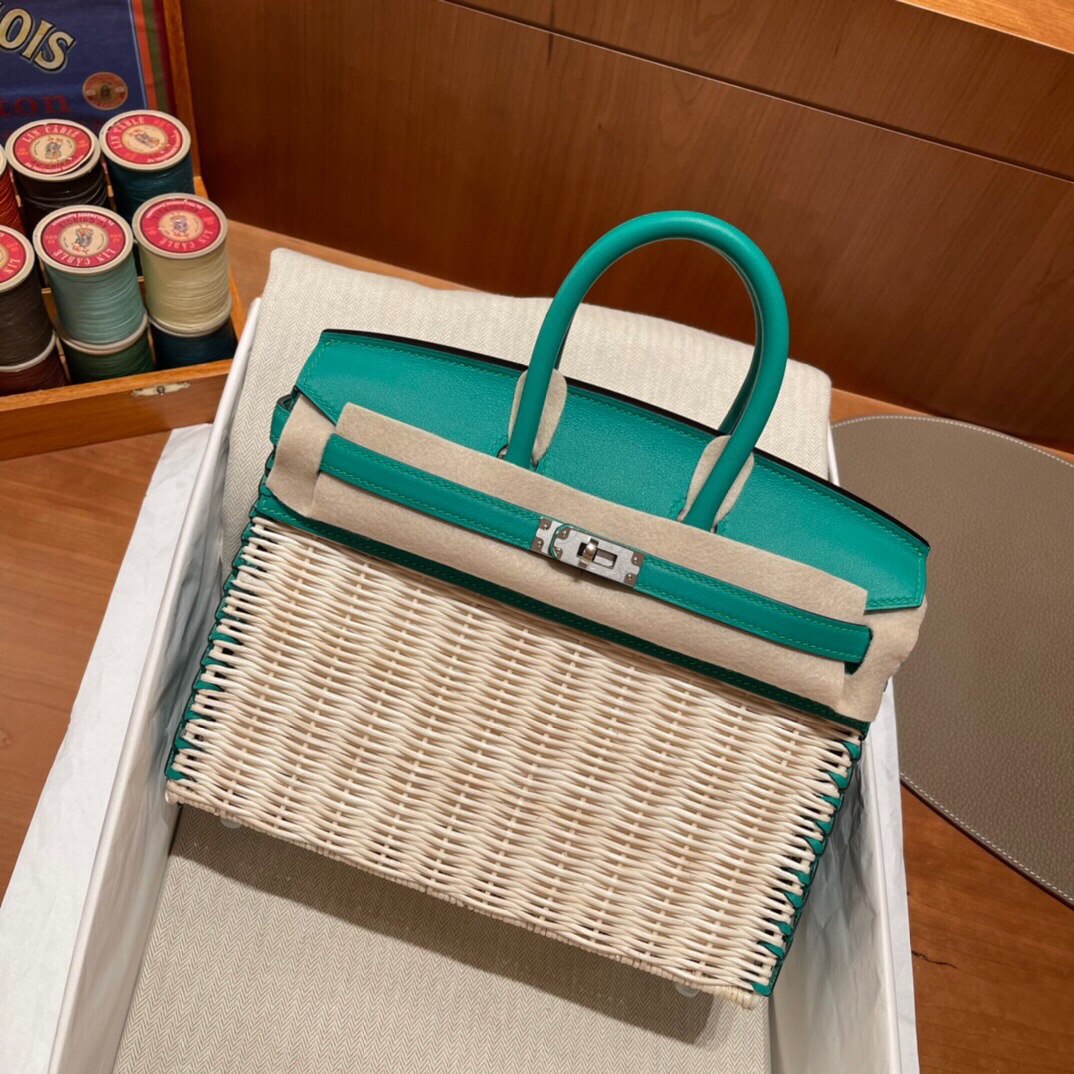Birkin 25 Picnic Osier Wicker&Saddle Leather Menthe