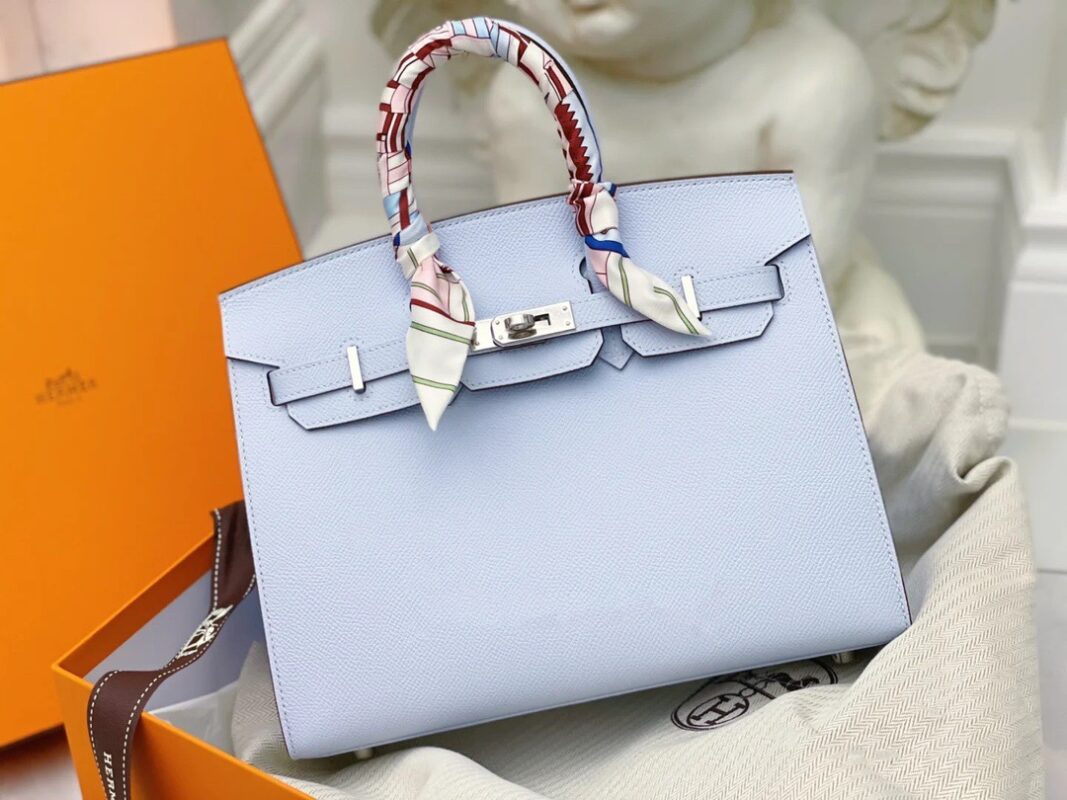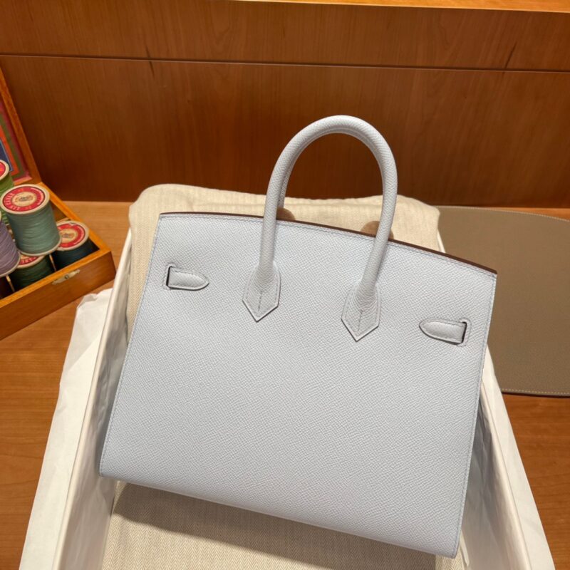 Birkin Sellier 25cm Outer Seam. Epsom Leather. T0 Fog Blue (Blue Brume). Silver Buckle