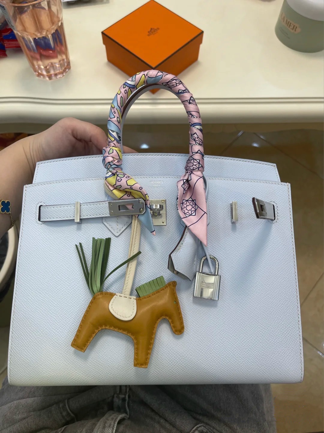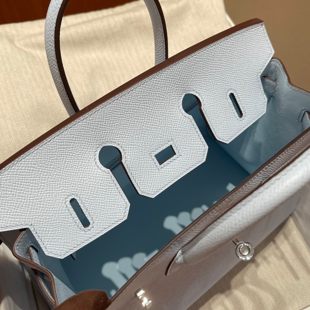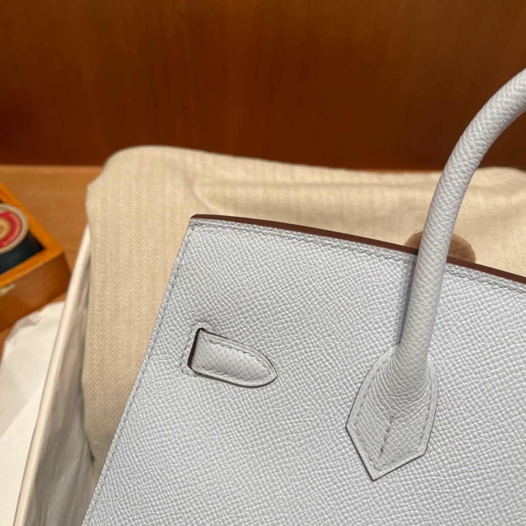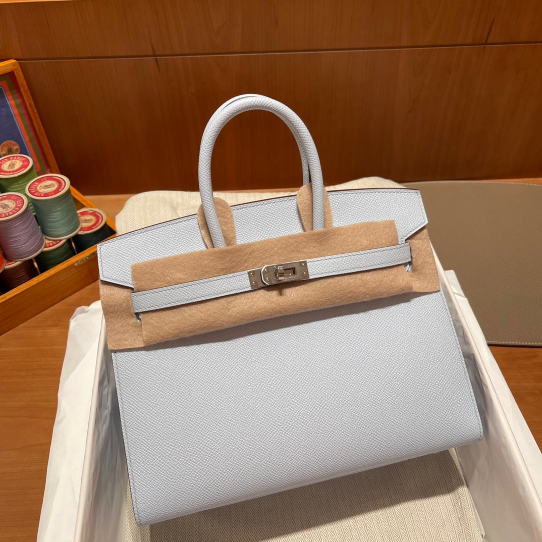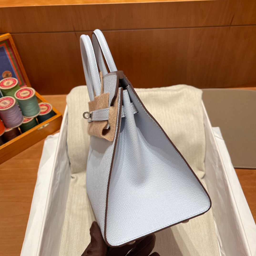 Birkin Sellier 25cm Outer Seam. Epsom Leather. T0 Fog Blue (Blue Brume). Silver Buckle