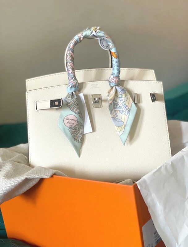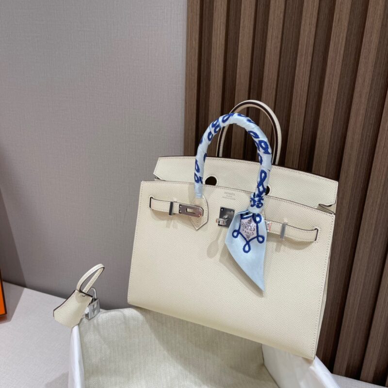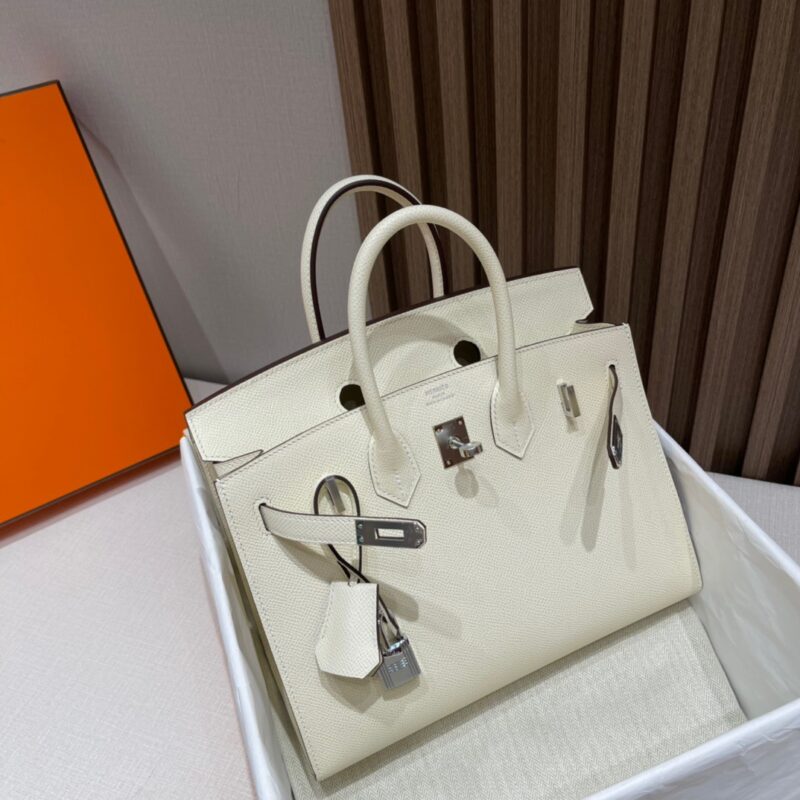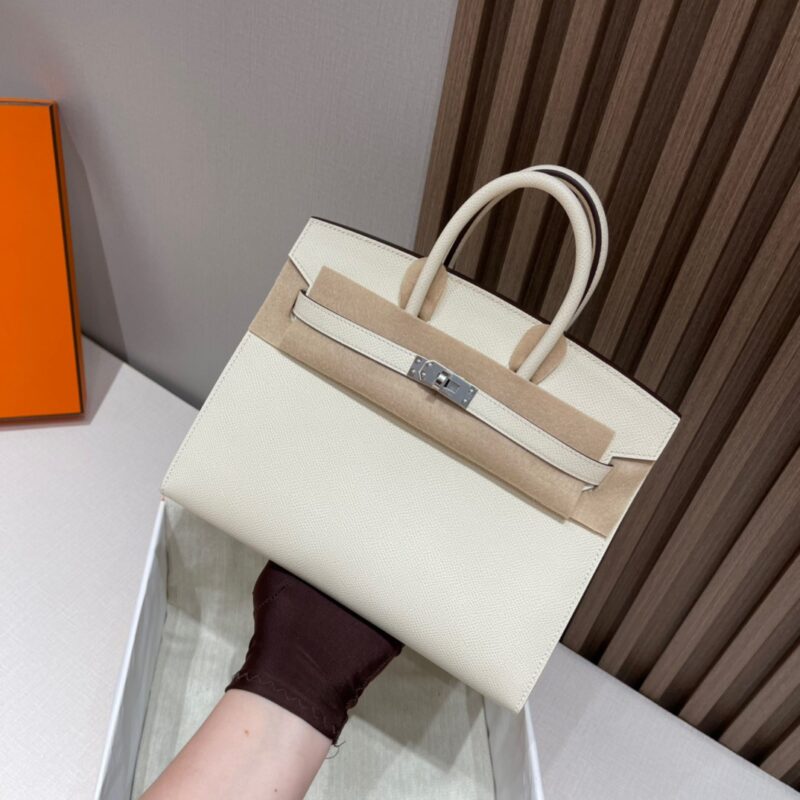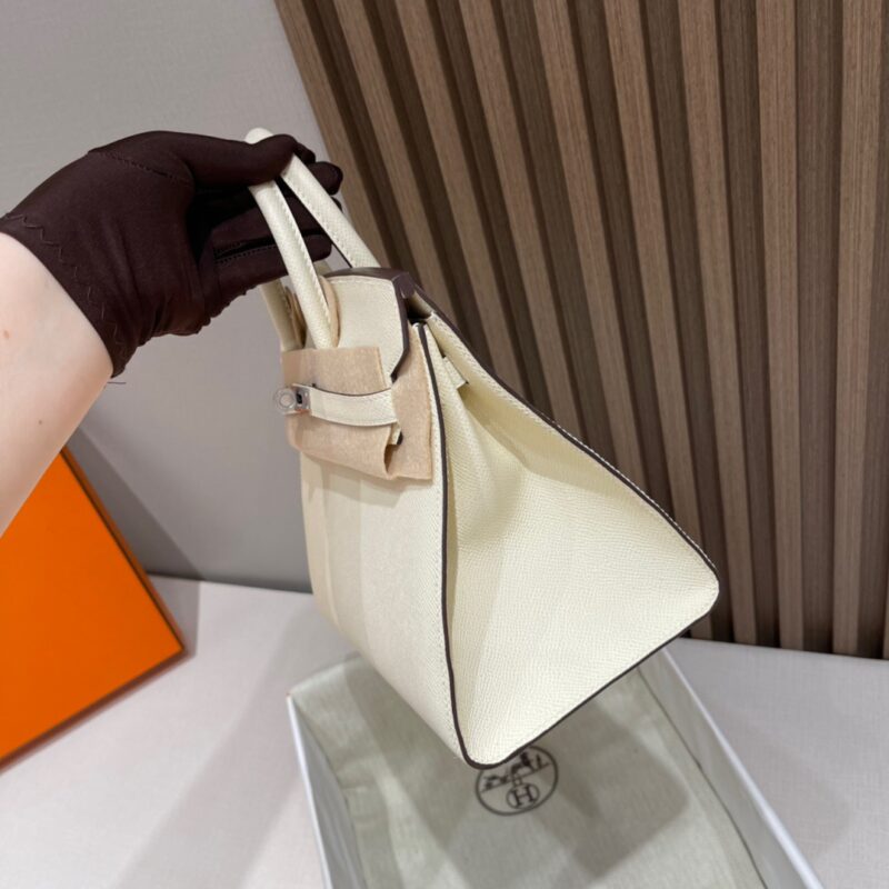Birkin Sellier 25 Outer Seam. Epsom Leather. i2 Creamy White (Nata) Silver Buckle