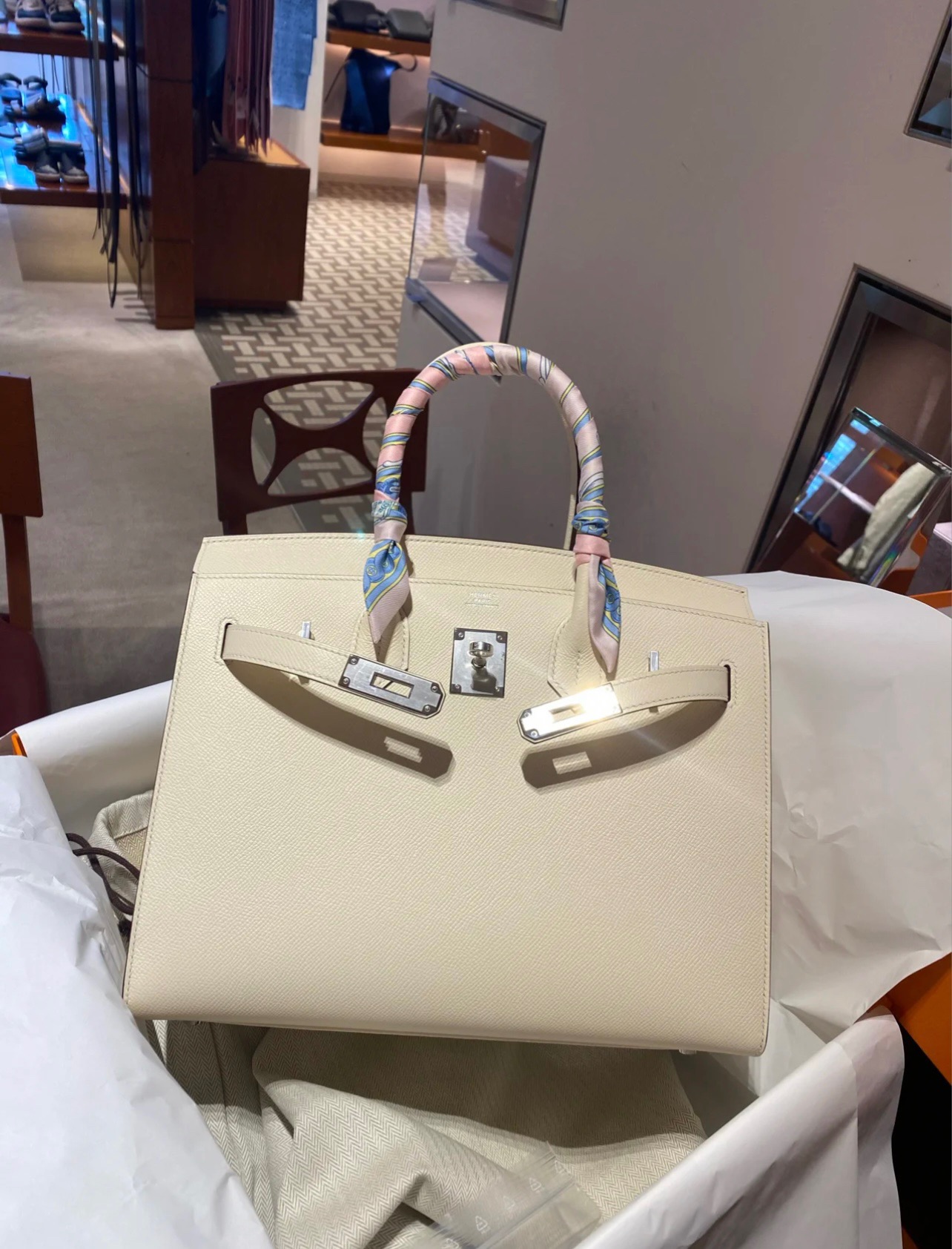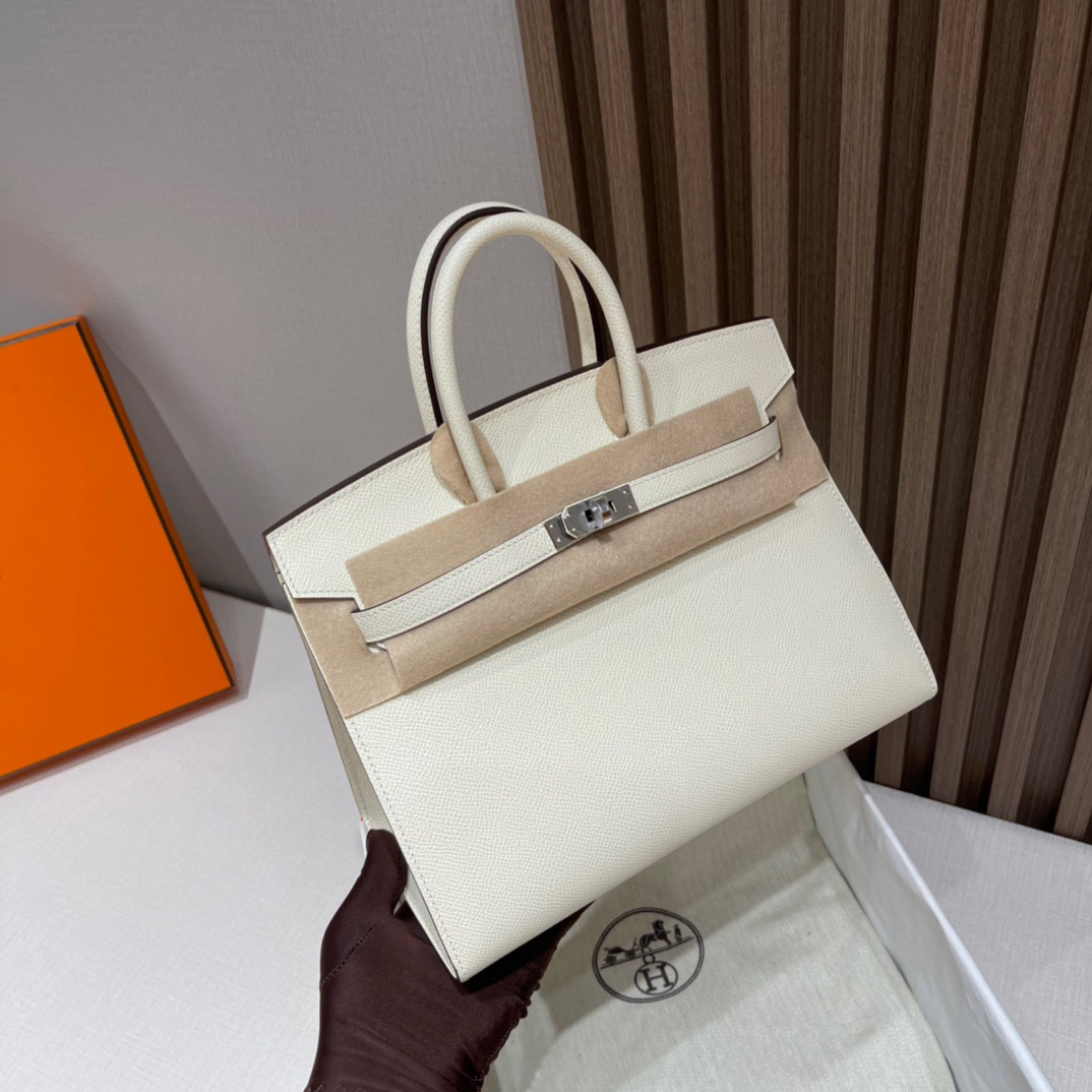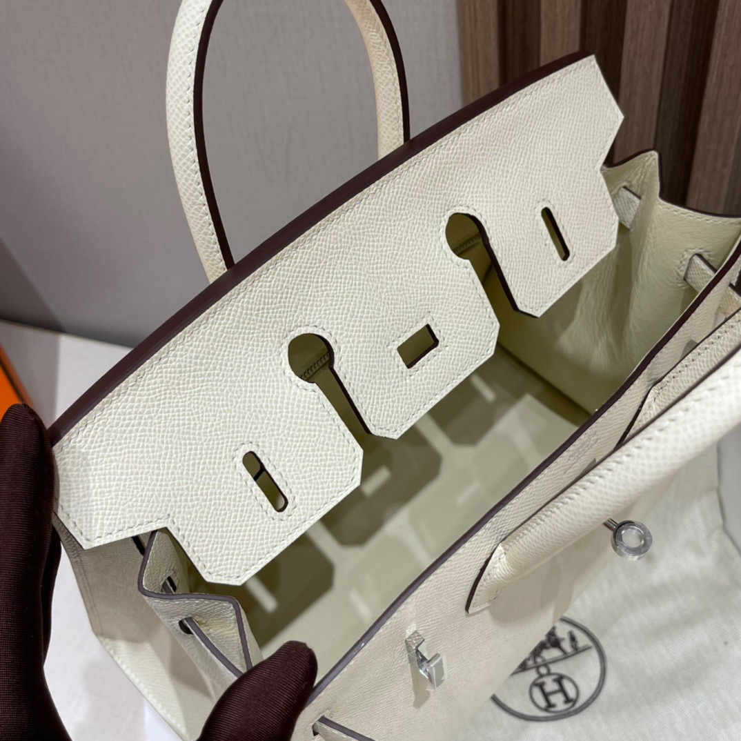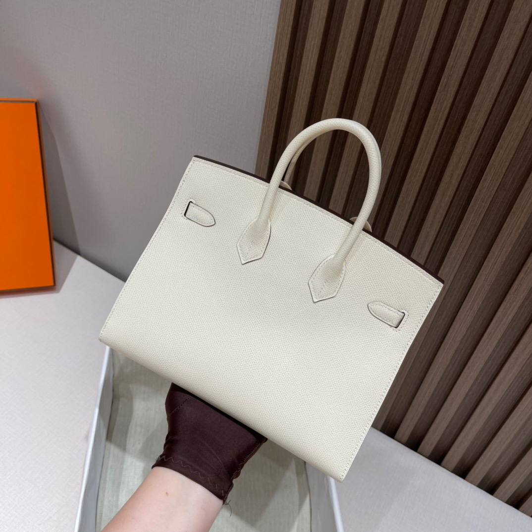 Birkin Sellier 25 Outer Seam. Epsom Leather. i2 Creamy White (Nata) Silver Buckle