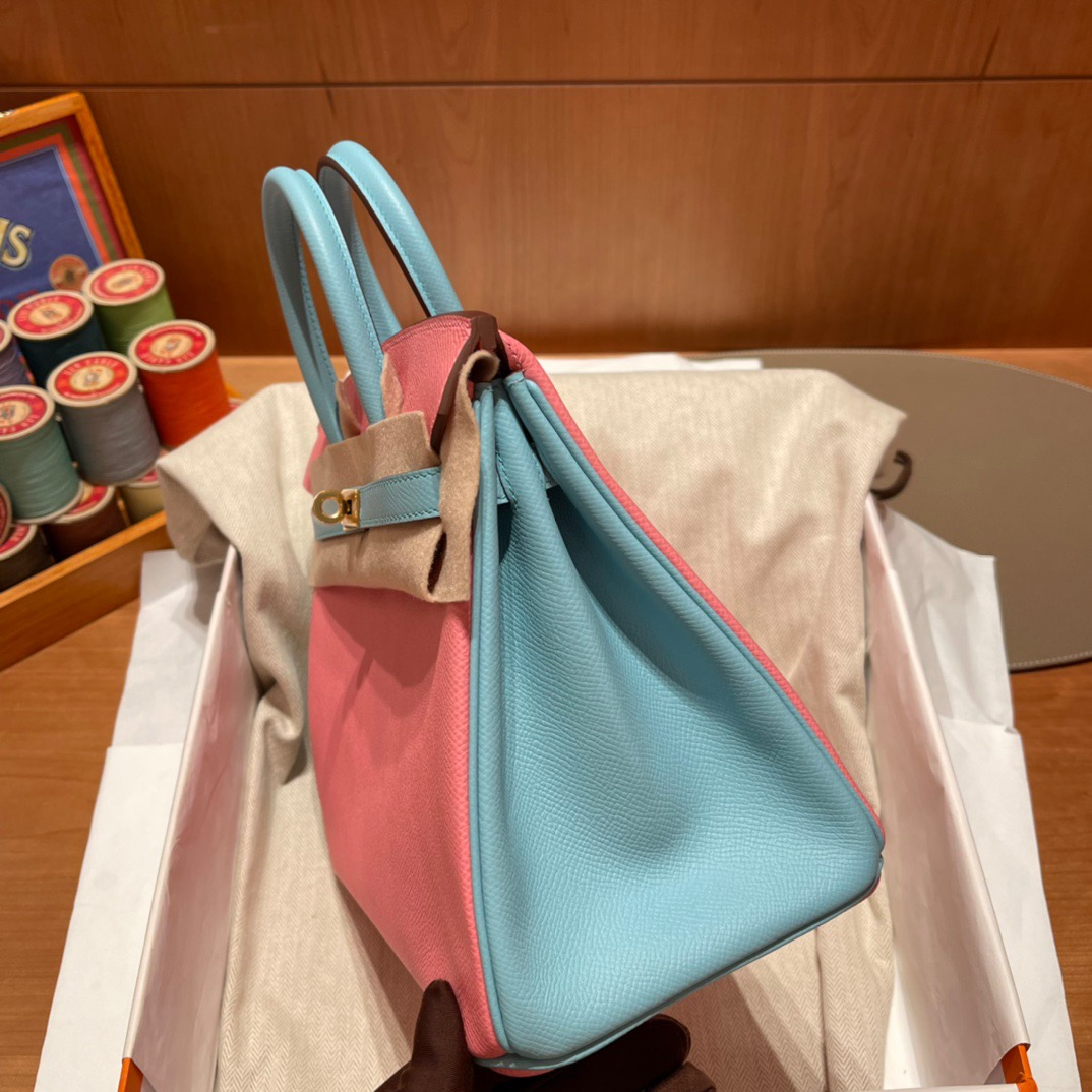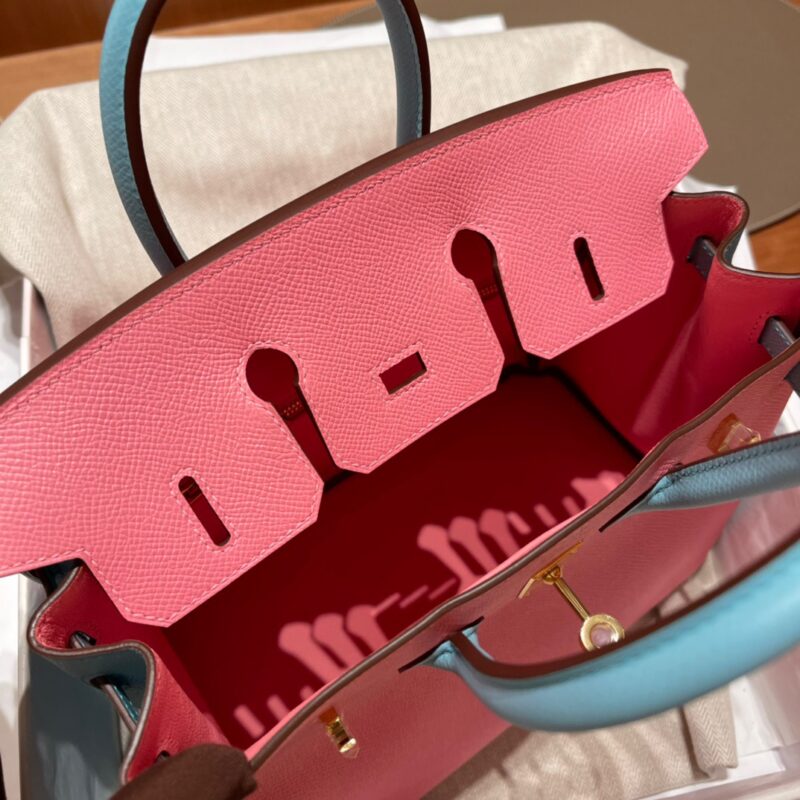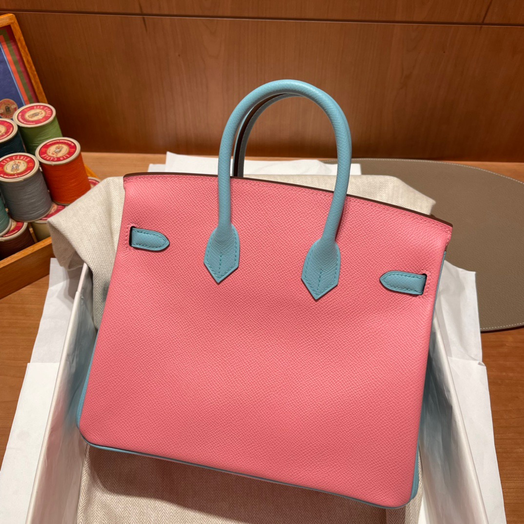 Special Order Birkin 25cm Epsom Palm Pattern Leather. 1Q Pink/3P Blue Atoll