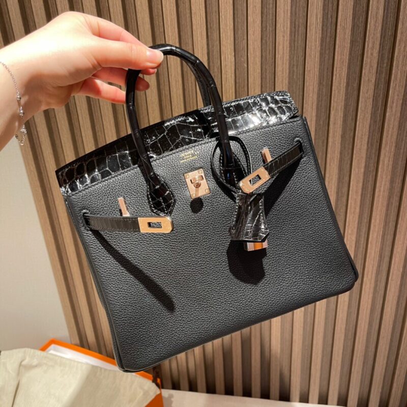 Birkin Touch 25cm Togo/Glitter Nile Crocodile 89 Black Rose Gold Buckle engraved with two points Touch is more beautiful than the ceiling than a full crocodile