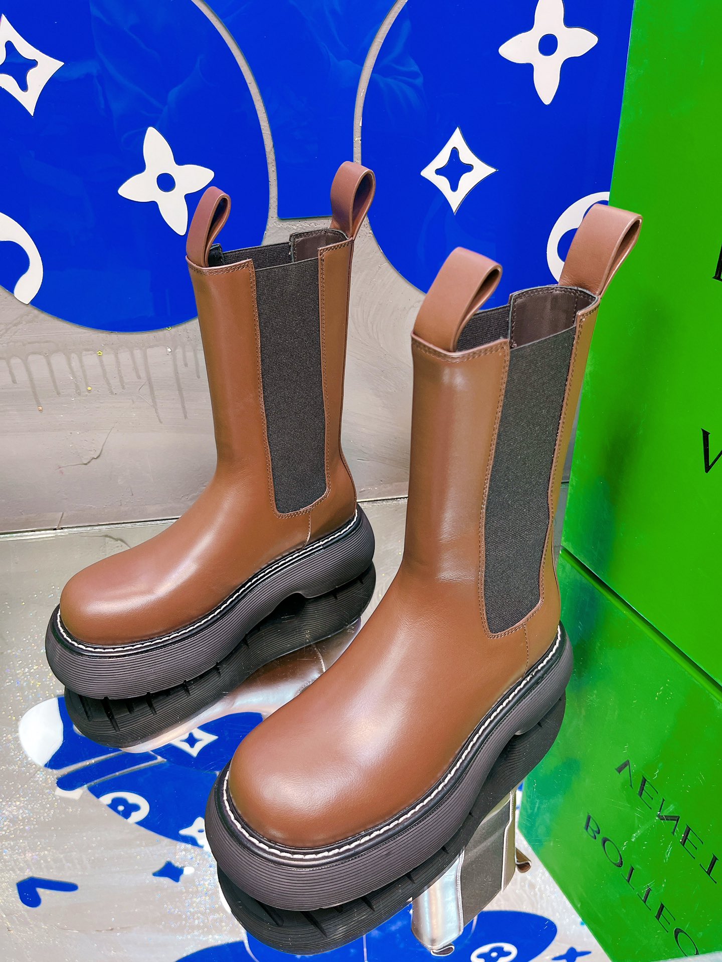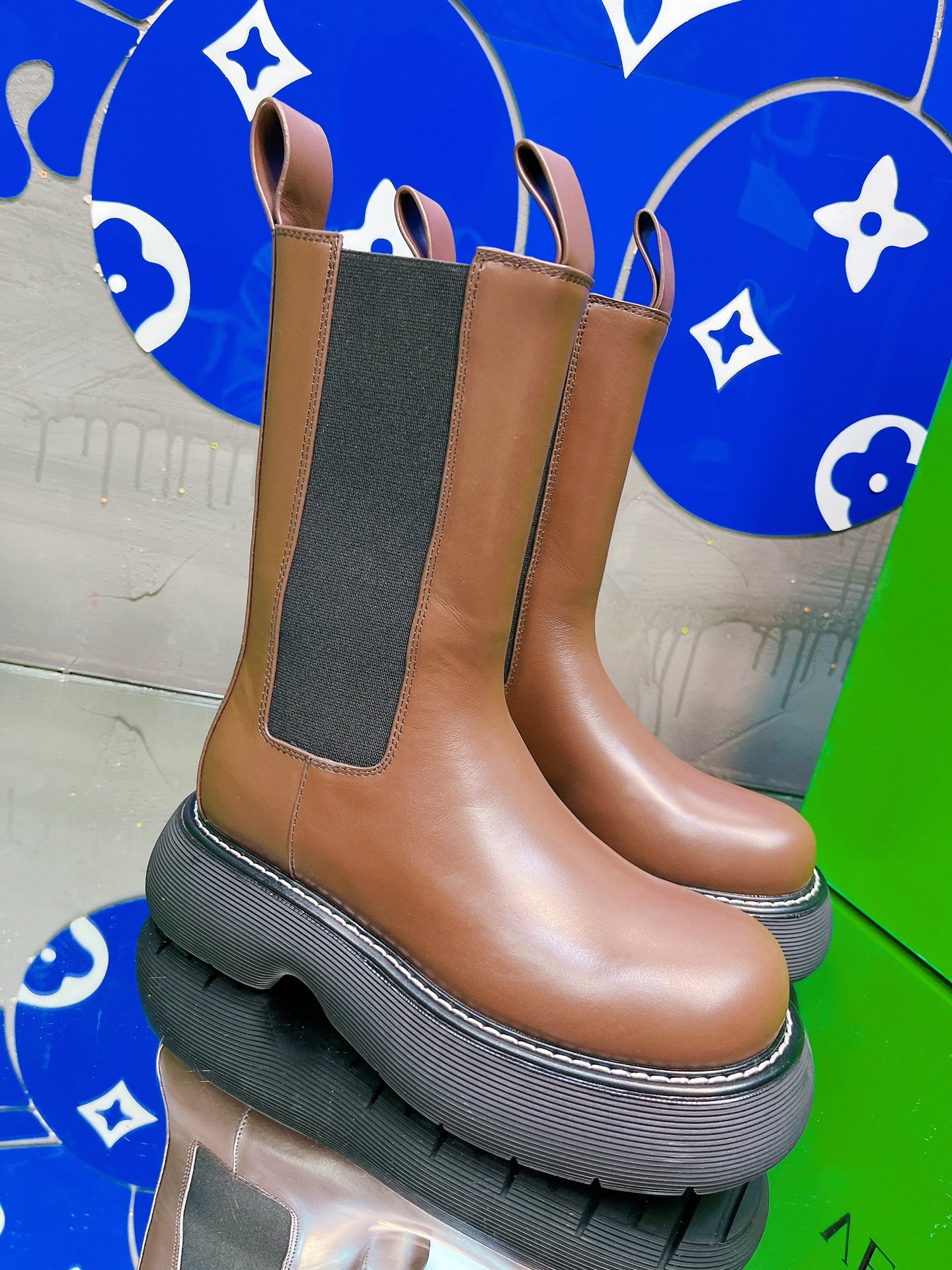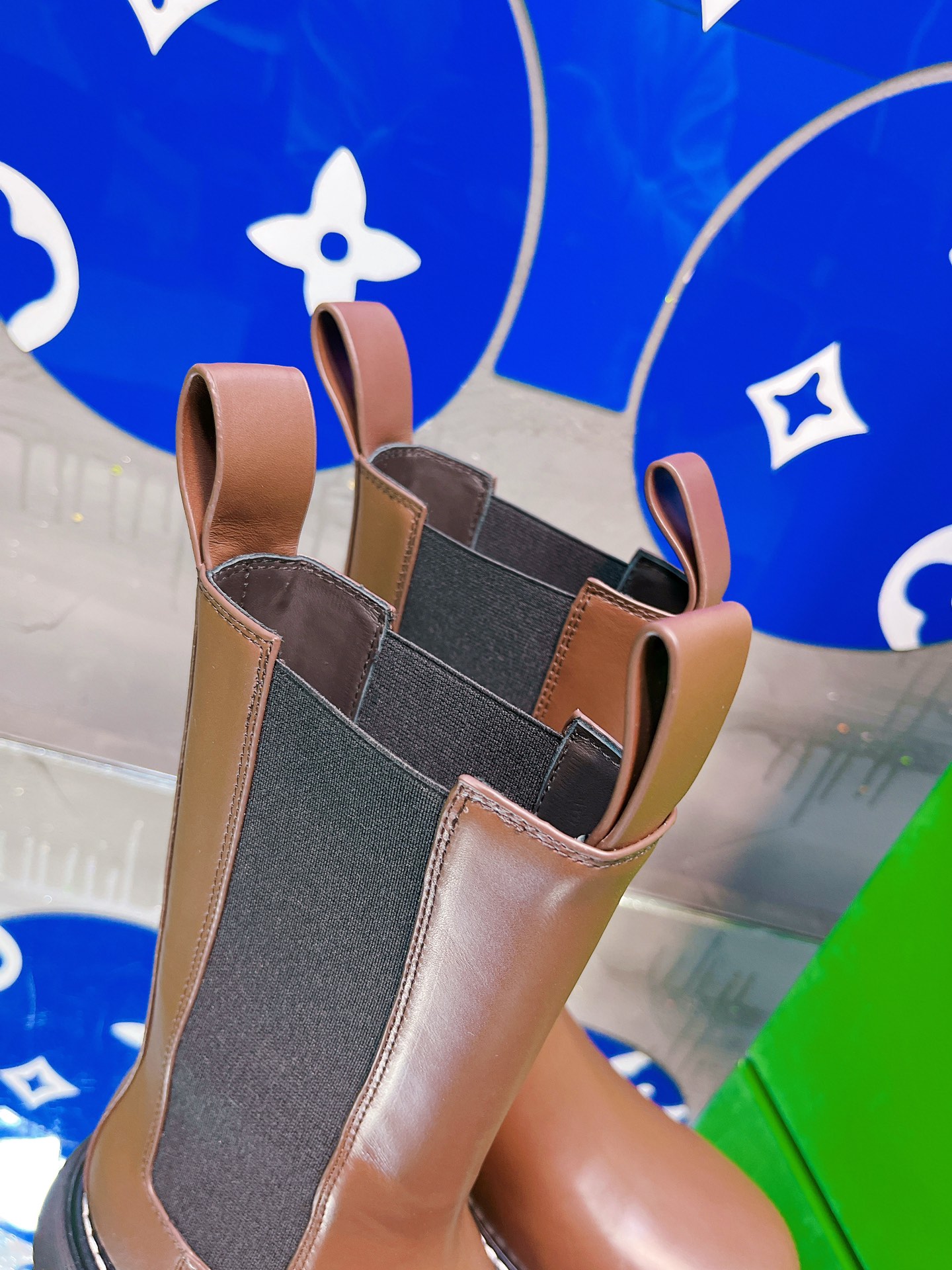 🍥❥BV top haute couture top leather boots with threaded bottom New personality, threaded large bottom edge design, genuine leather welt, original bottom flower 💯 first-class material selection, there is no best choice, only higher quality choices ✔️Threaded outsole, original mold opening logo, high-end luxury ✔️The fabric is made of the same original imported cowhide material 💯 ✔️The inner lining is made of water-dyed cowhide, the high-end is the same as the original version ✔️The shoe type adopts the loafer toe shape, which is cool and trendy 💯trend outsole, new favorite ✔️Size 35-40 (40 set) ✔️Original three-in-one high-end green box packaging