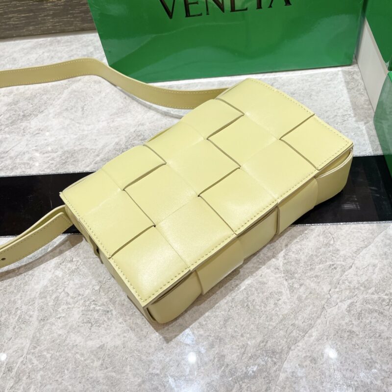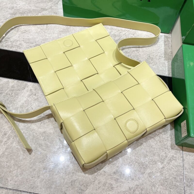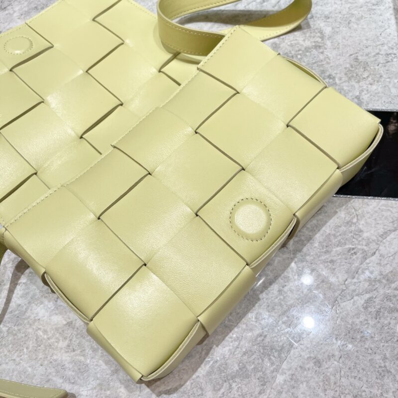 Cassette’s new woven Rubik’s Cube bag Messenger/clutch The boxy shape of the bag is matched with classic woven elements. The whole is retro and tasteful. There are many colors in total. Each color is very high-end and concise but has a cold style. The upper body is fashionable and has a Faner likes the soft lambskin size 23x15x6cm