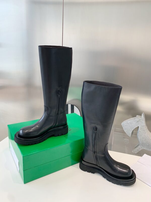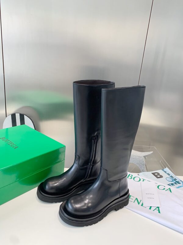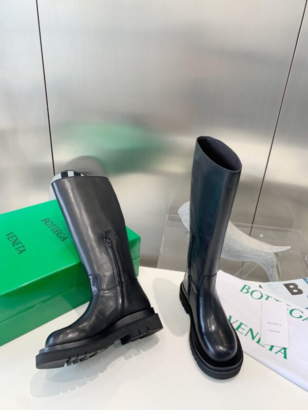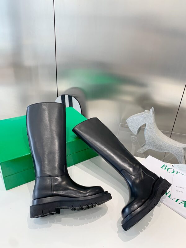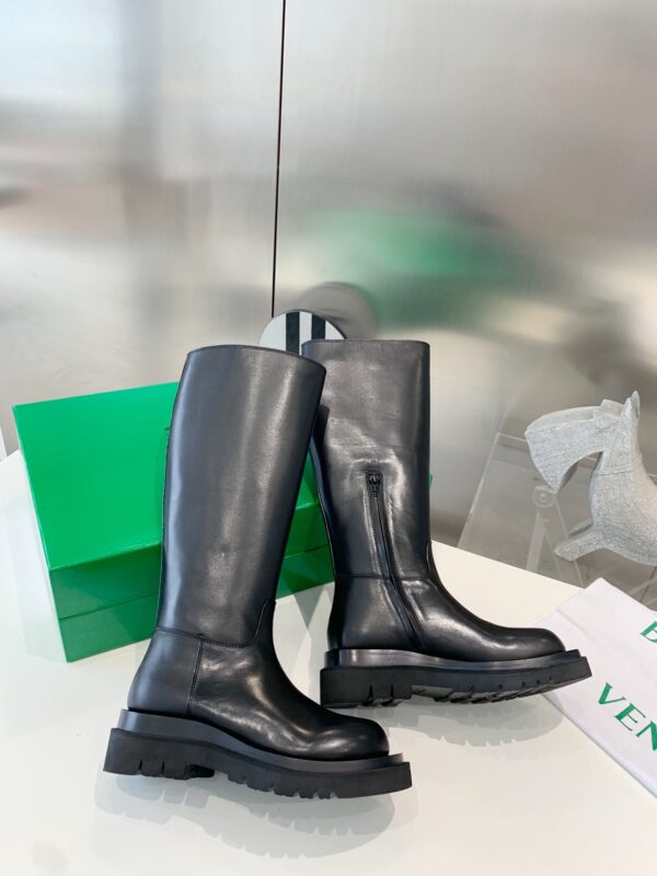 High Boots Black Top Bottega venet* bv thick-soled Axigo mona with the same style in autumn and winter thick sponge cake bottom LUG knight boots boots The position of the boot is really important to determine whether the boots look thin Original purchase! Last! Imported fetal cowhide, inner cowhide. Leather superimposed welt, foam outsole. Bottom thickness 5cm Size: #35-40 (40 customized non-refundable)