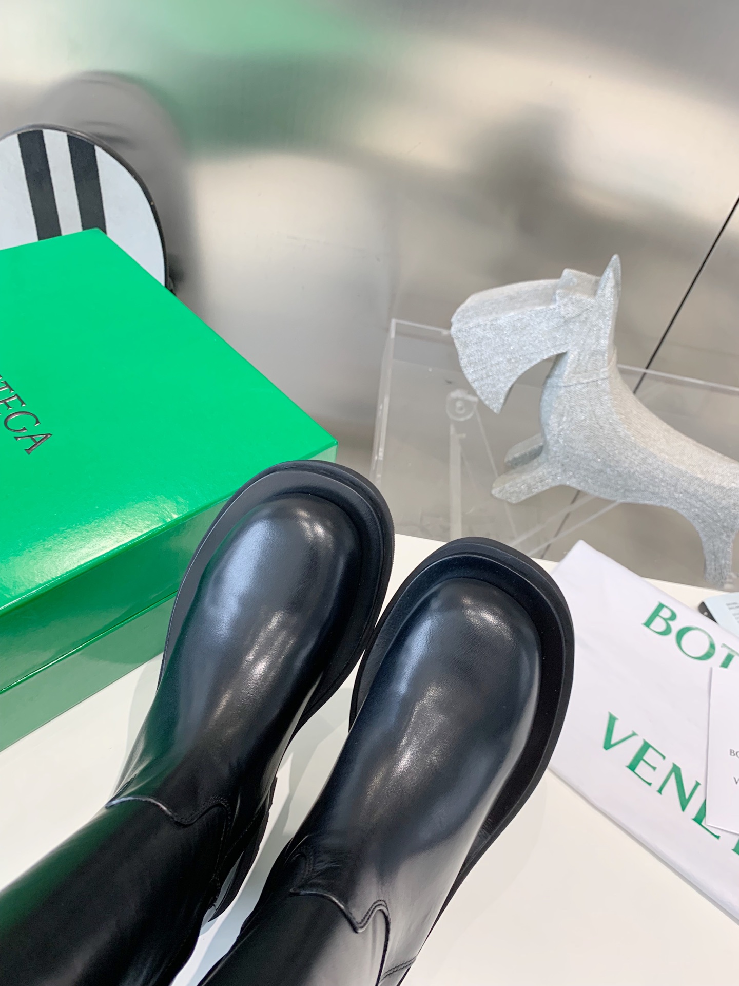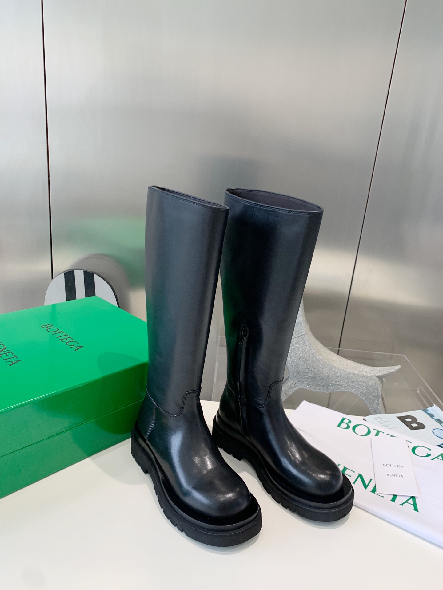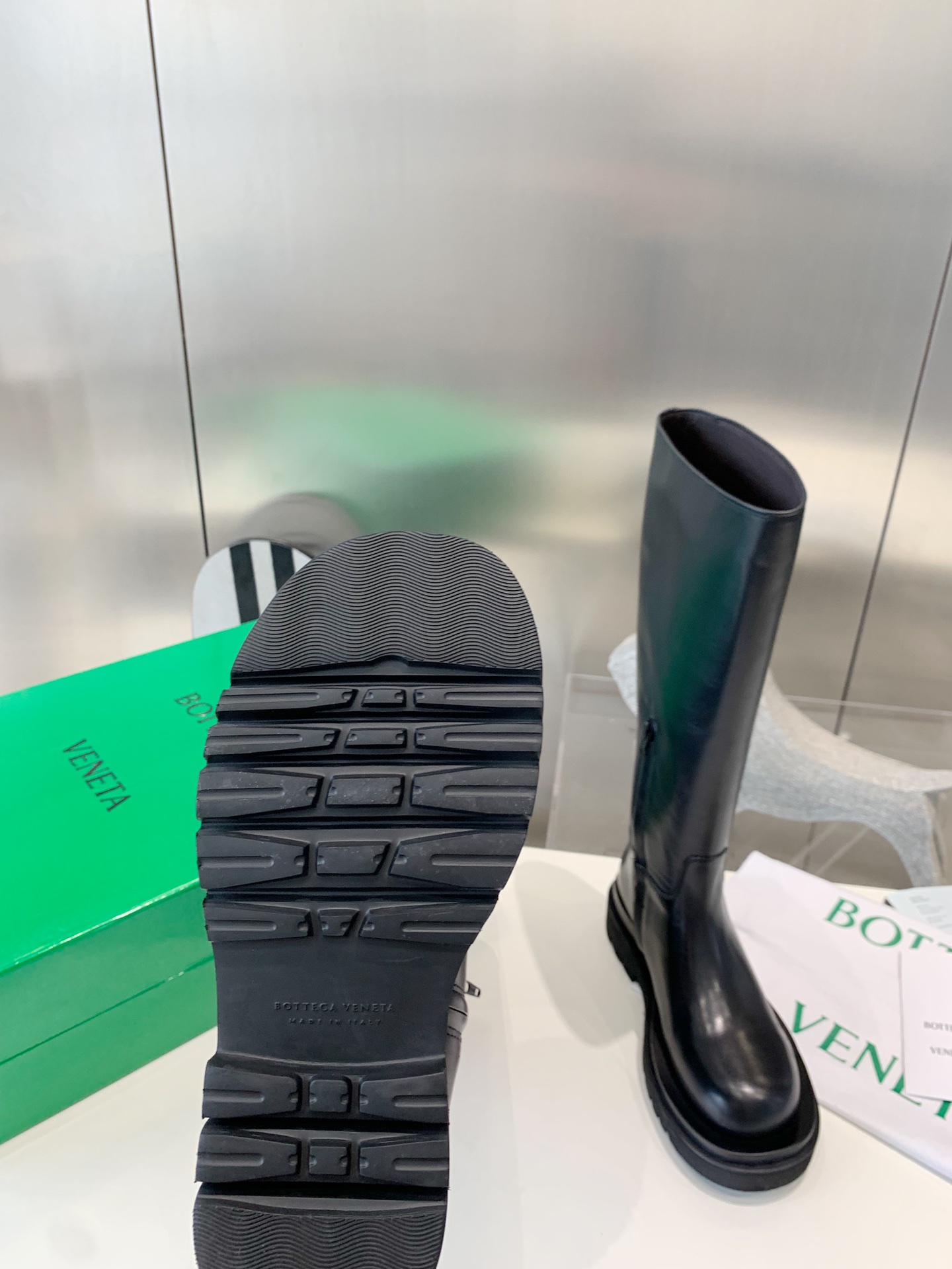 High Boots Black Top Bottega venet* bv thick-soled Axigo mona with the same style in autumn and winter thick sponge cake bottom LUG knight boots boots The position of the boot is really important to determine whether the boots look thin Original purchase! Last! Imported fetal cowhide, inner cowhide. Leather superimposed welt, foam outsole. Bottom thickness 5cm Size: #35-40 (40 customized non-refundable)