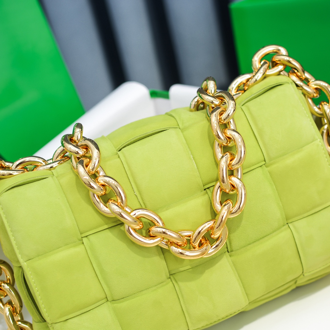 ✧BV Cassette matte new pillow bag with chain, diagonal, single back✧ The classic weaving abstraction is upgraded into a three-dimensional lattice, using soft high-grade cashmere + distressed matte gold buckle is very very fashionable! ! The soft padded design feels super comfortable to the touch~ you can hold it or crossbody, the fat Cassette is super cute, full of aura and fun~ size: 26x18x8cm