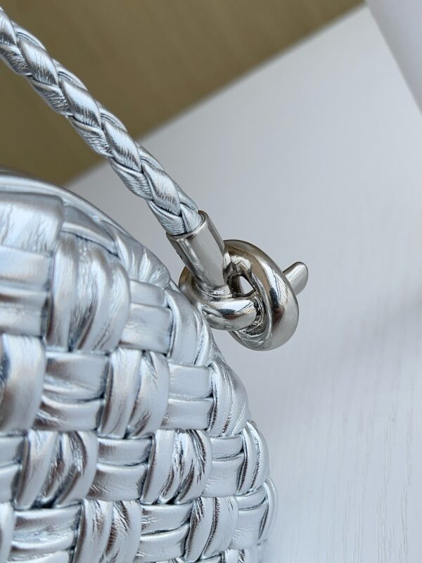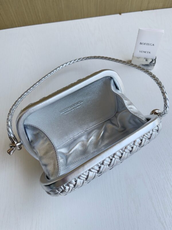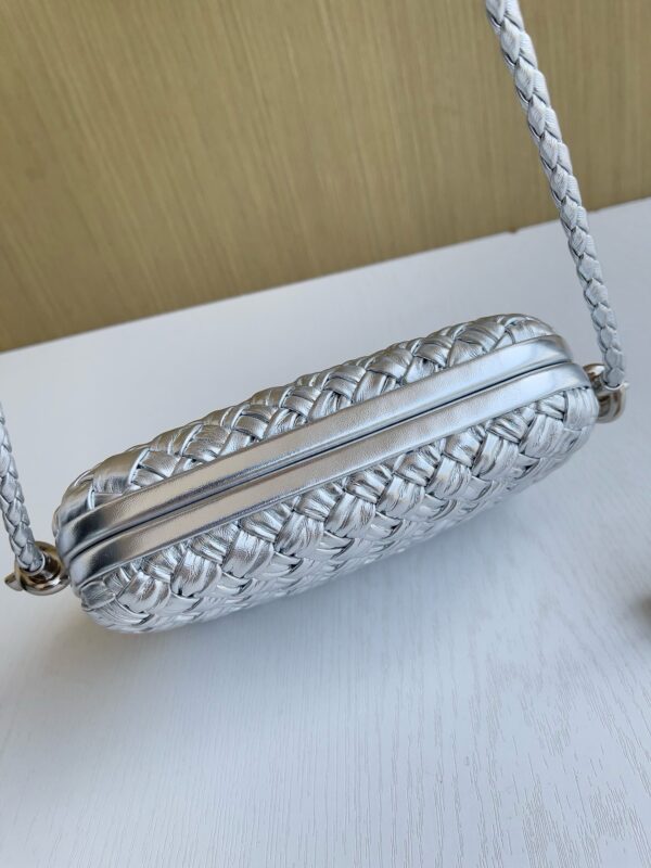 Престижная сумка-клатч The Knot от BV с культовой тканой текстурой и пряжкой-узлом отличается благородным и элегантным характером, который привлекает голливудских звезд и светских людей. Они часто используют этот клатч в тон своим платьям при посещении официальных мероприятий. Дизайн. Маленький и изысканный, сдержанный, без логотипа, без дополнительных цветочных украшений. Он простой и элегантный. Держа его в руке, можно придать женщинам элегантный и нежный характер. Ремесло, кажущееся простым, как плетение цветочной корзины, содержит в себе накопление многолетних неудач мастеров БВ. Плетение выполнено в дизайне этого сезона «Foulard Intreccio тканая кожа».