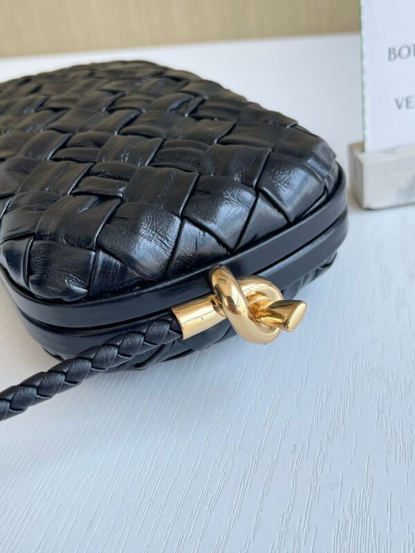 Престижная сумка-клатч The Knot от BV с культовой тканой текстурой и пряжкой-узлом отличается благородным и элегантным характером, который привлекает голливудских звезд и светских людей. Они часто используют этот клатч в тон своим платьям при посещении официальных мероприятий. Дизайн. Маленький и изысканный, сдержанный, без логотипа, без дополнительных цветочных украшений. Он простой и элегантный. Держа его в руке, можно придать женщинам элегантный и нежный характер. Ремесло, кажущееся простым, как плетение цветочной корзины, содержит в себе накопление многолетних неудач мастеров БВ. Плетение выполнено в дизайне этого сезона «Foulard Intreccio тканая кожа».