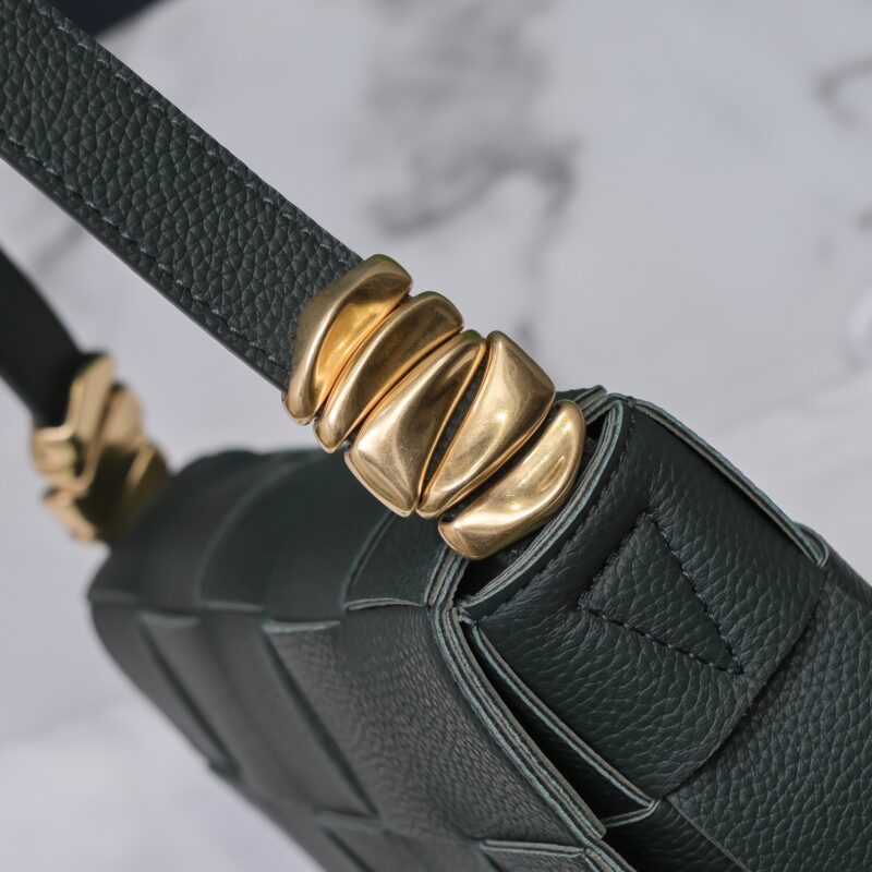 The new Cassette has a new version of metal accessories. This is a popular item. The leather surface is replaced with more wear-resistant lychee grain cowhide. The inner leather is still made of soft lambskin. What’s more unique is that both sides of the shoulder strap are added. Metal accessories with a great sense of design, the metal on both sides is deliberately loose, and it makes a pleasant “jingling” sound during use, and the ultra-detailed design is perfect. Size: 23x15x5.5