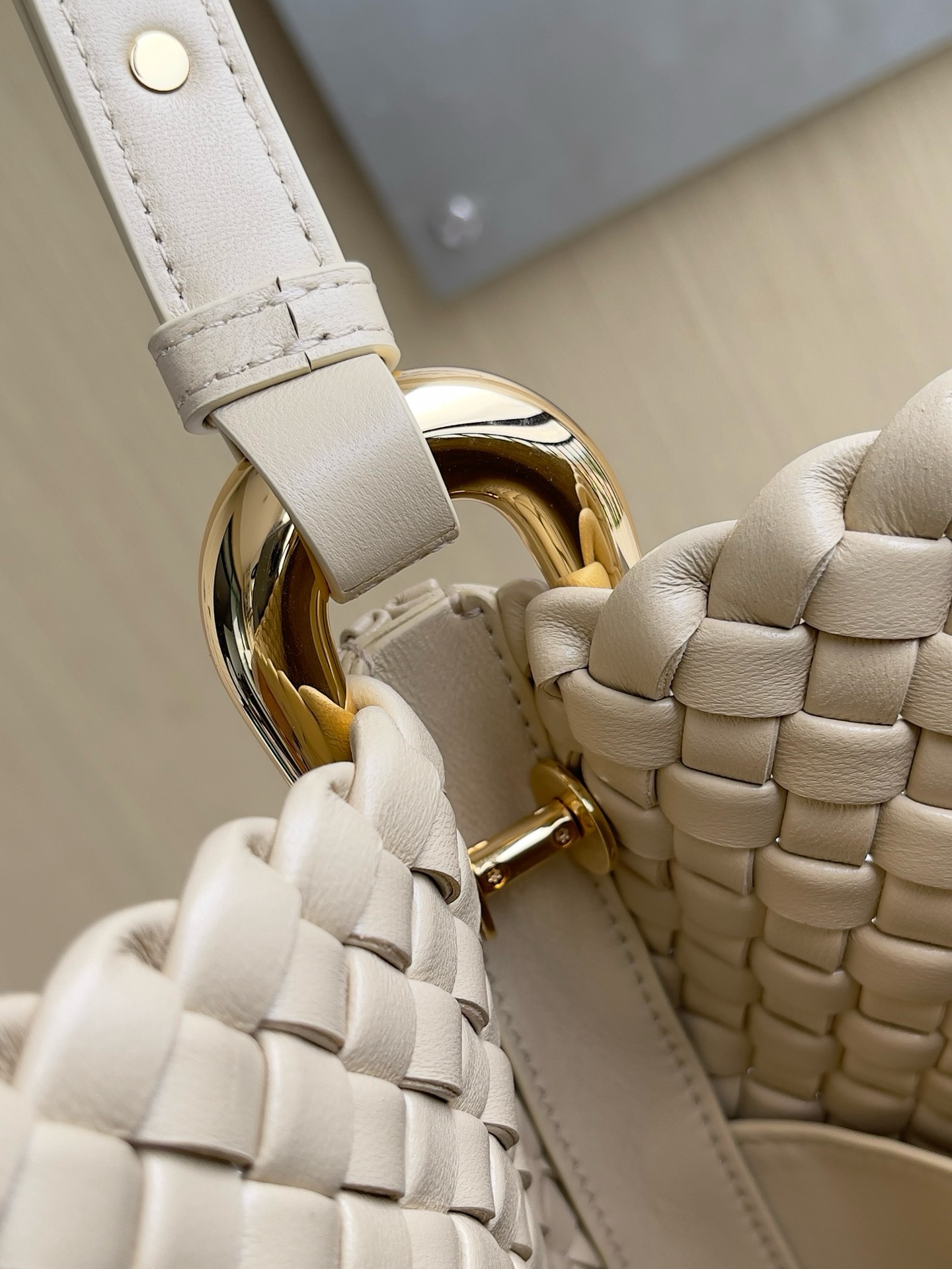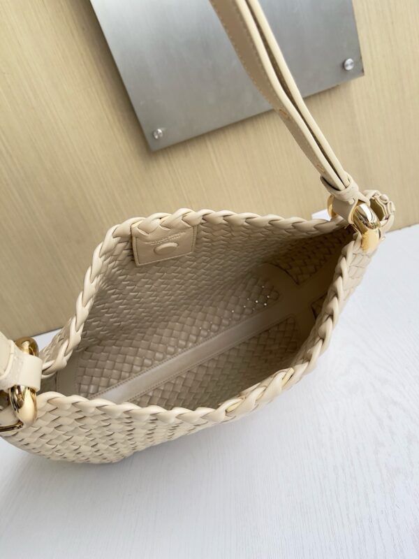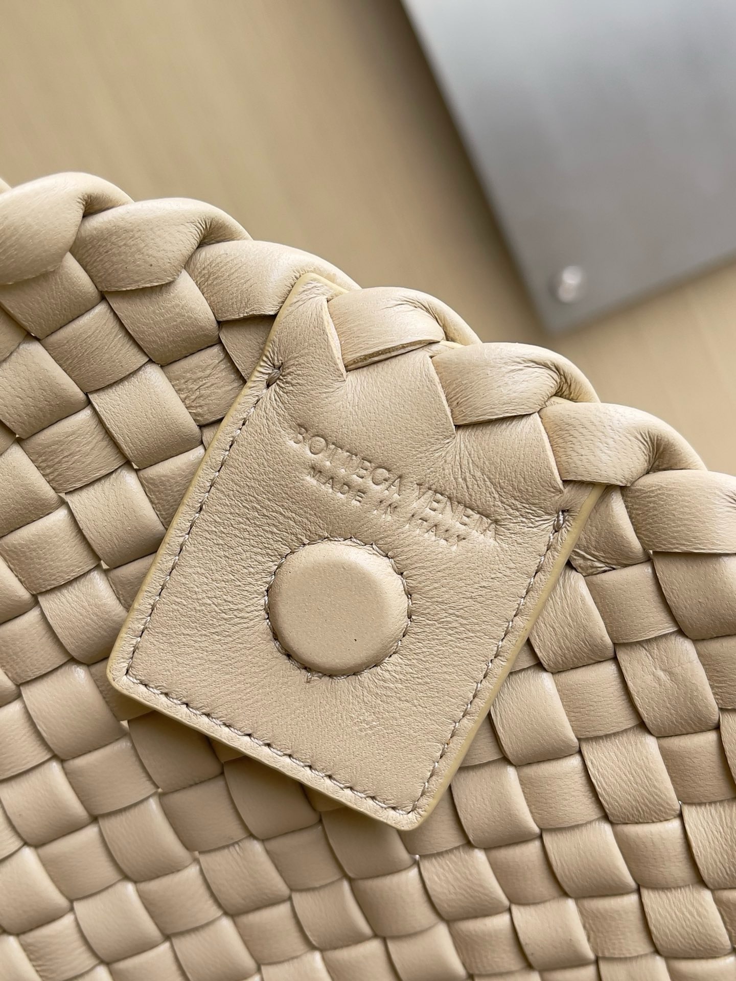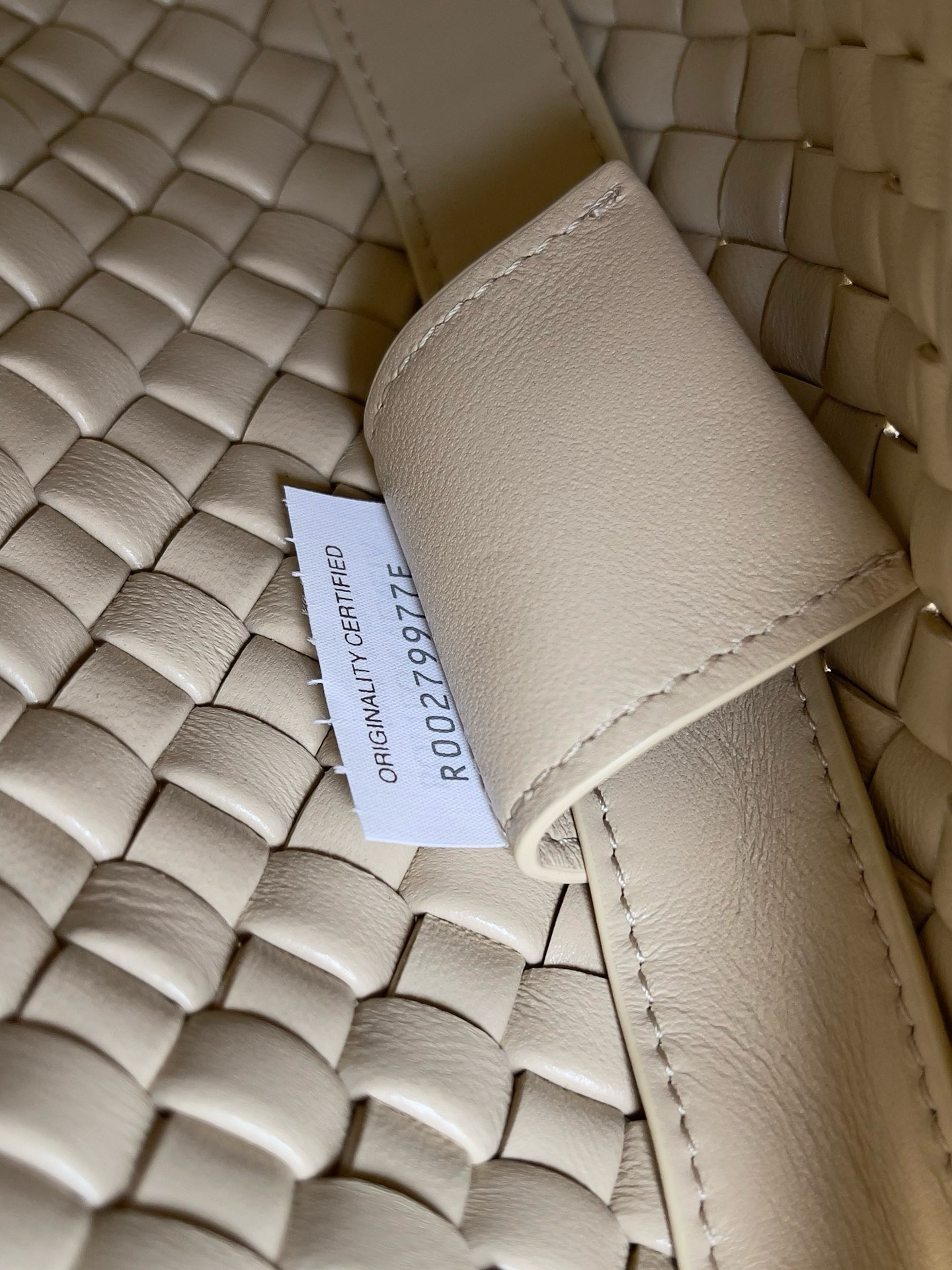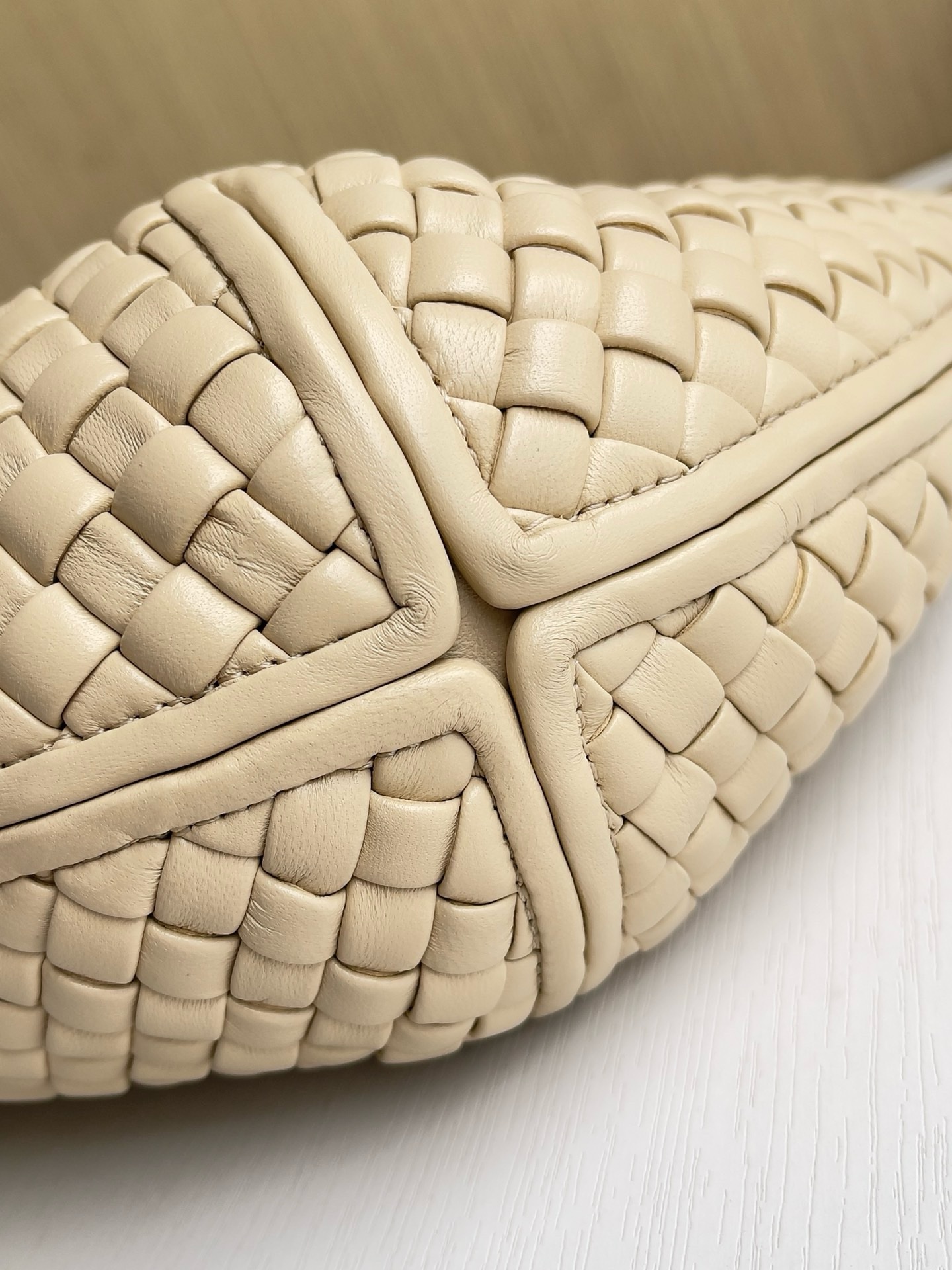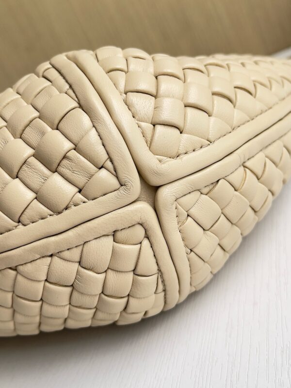 Вся сумка выполнена из мягкой интреччио, которая при свете выглядит очень изысканно и сдержанно. Внутреннее плетение демонстрирует превосходное мастерство BOTTEGA, а швы обработаны до совершенства. Верхняя часть сумки имеет небрежный и элегантный изгиб. .