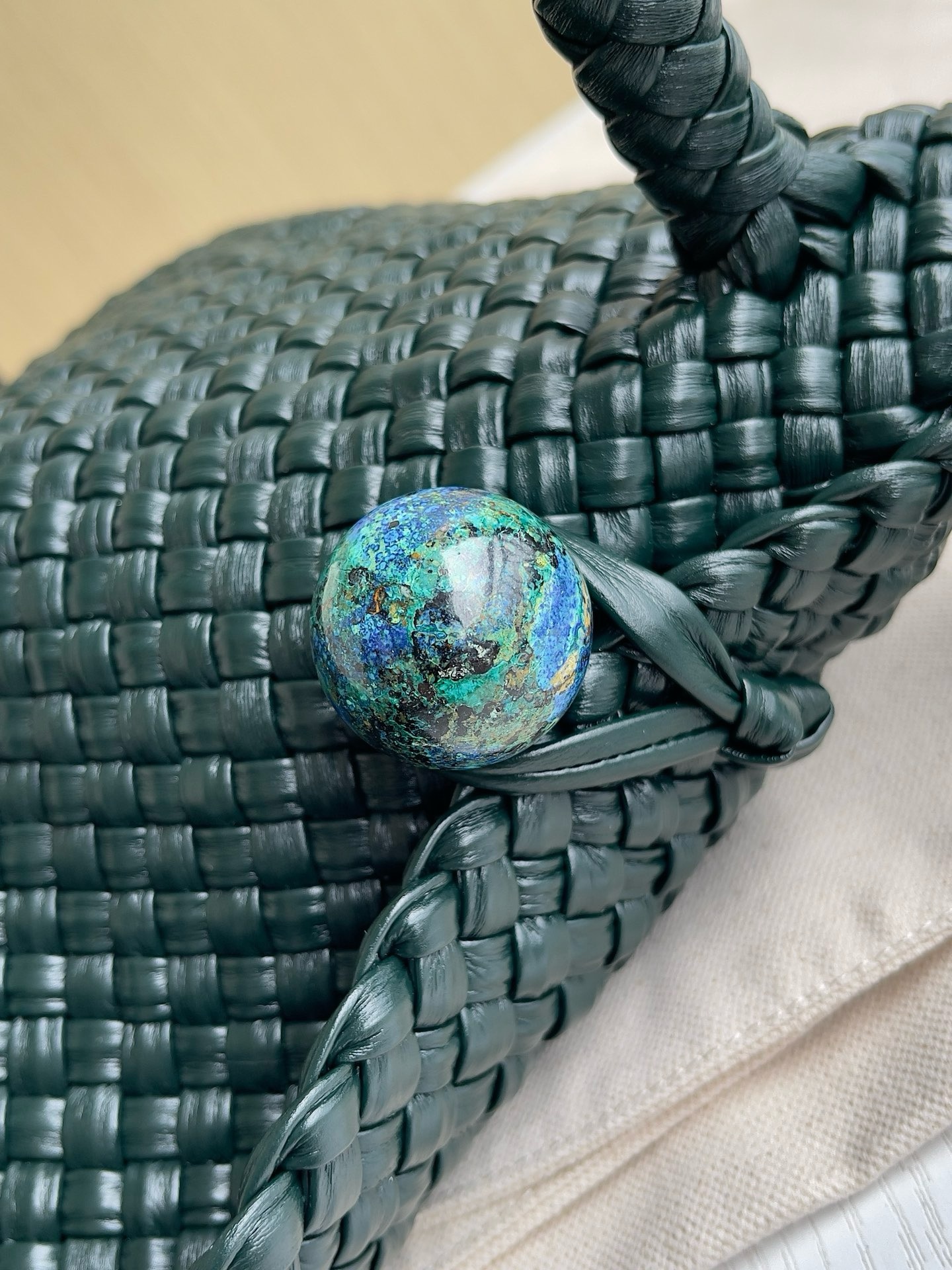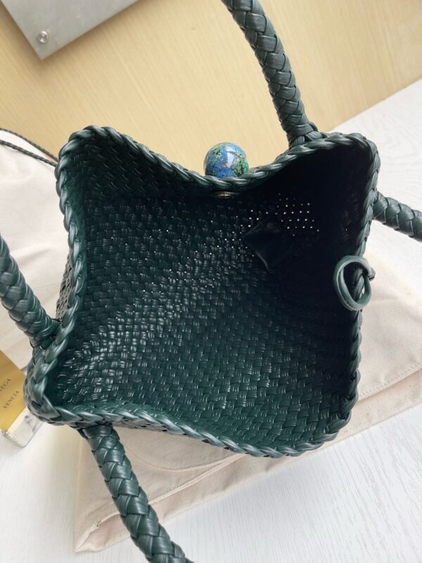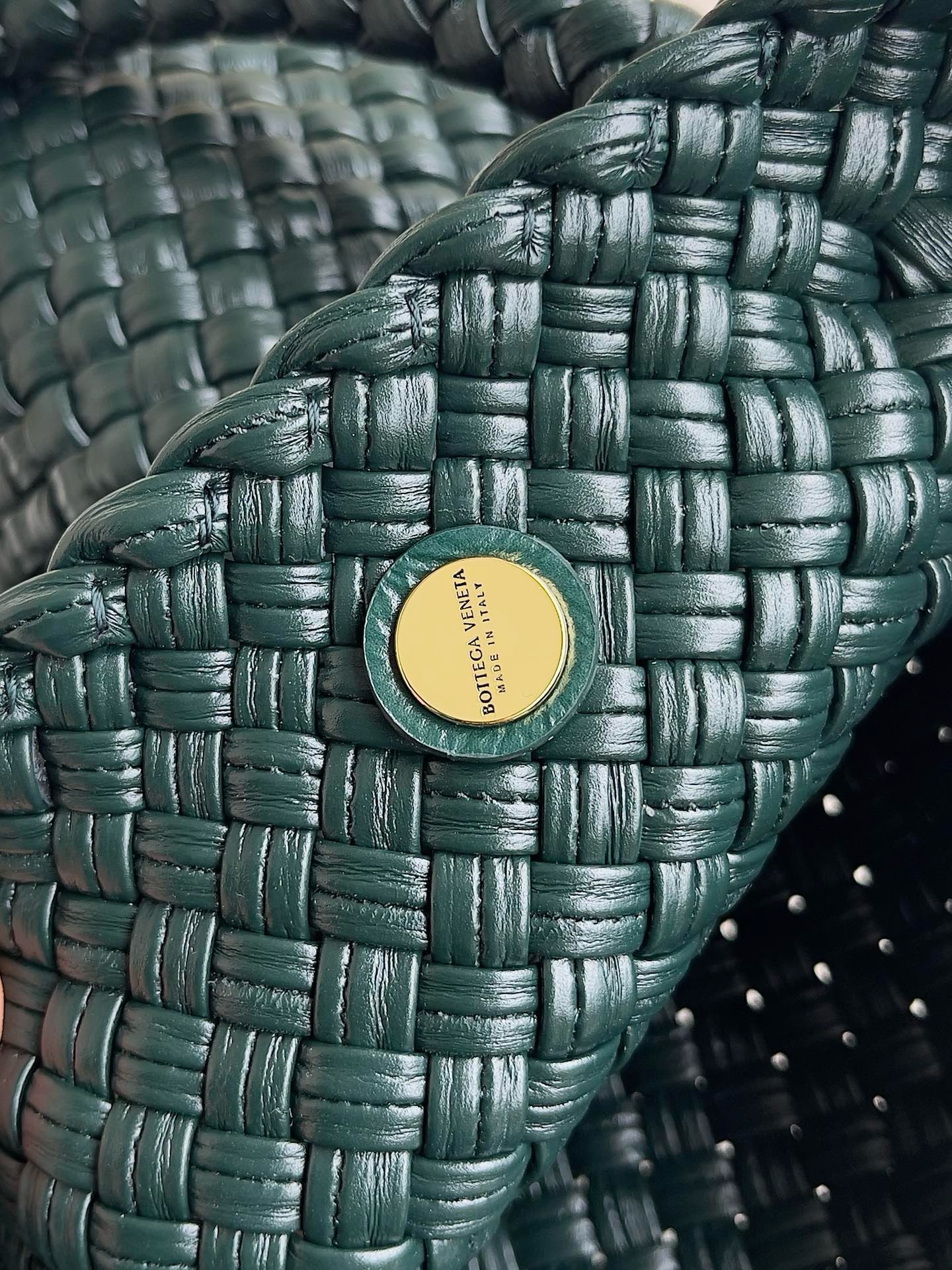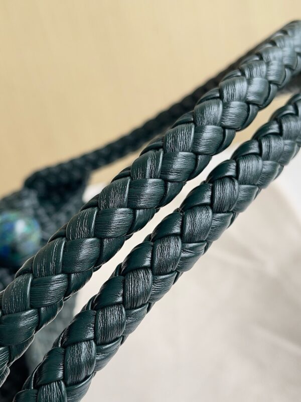 Для производства требуется 145 метров кожаных полосок. Для плетения мастера используют деревянные формы, а в качестве открывания и закрывания сумочки используются небольшие металлические шарики (малахит) из латуни Muse.