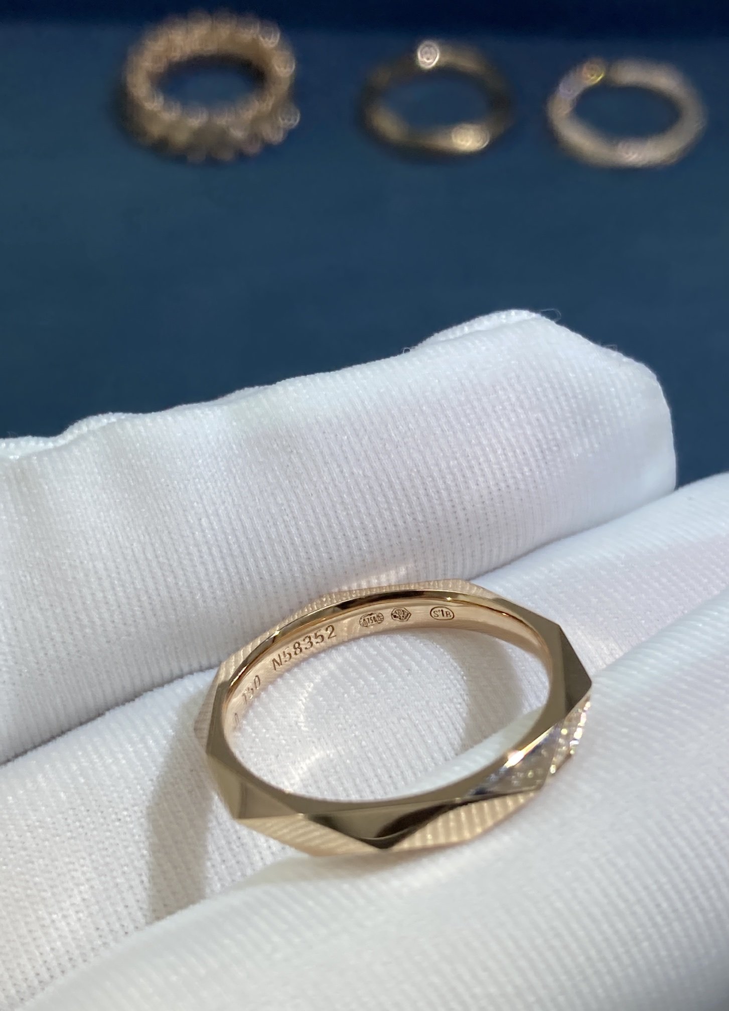 The metal used in pieces of jewelry are often a lustrous yellow or white gold, which is expertly polished to a mirror-like finish. The precious stones are carefully selected by our masters and set in a precise manner, showing off their color, clarity, and brilliance to their full potential.