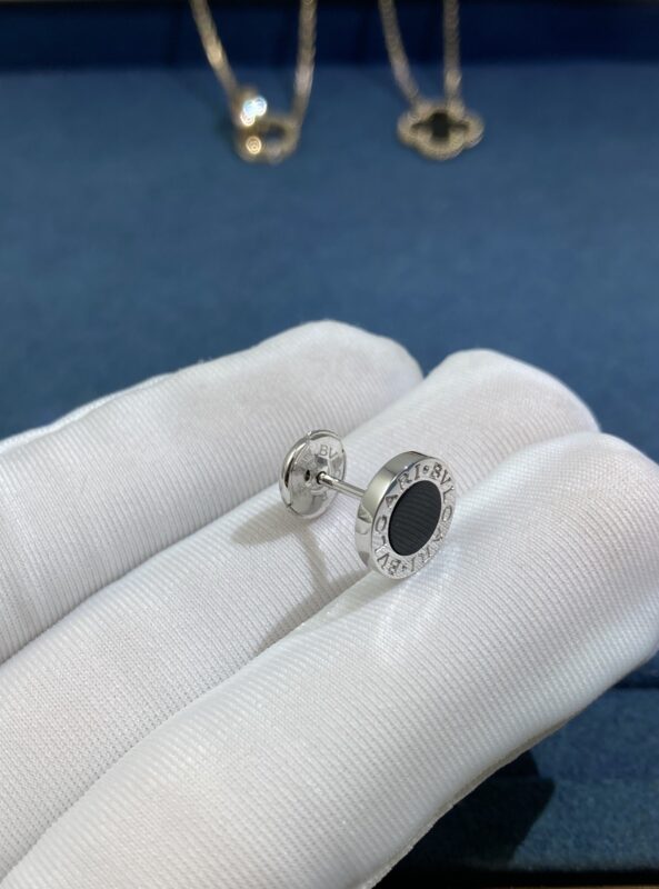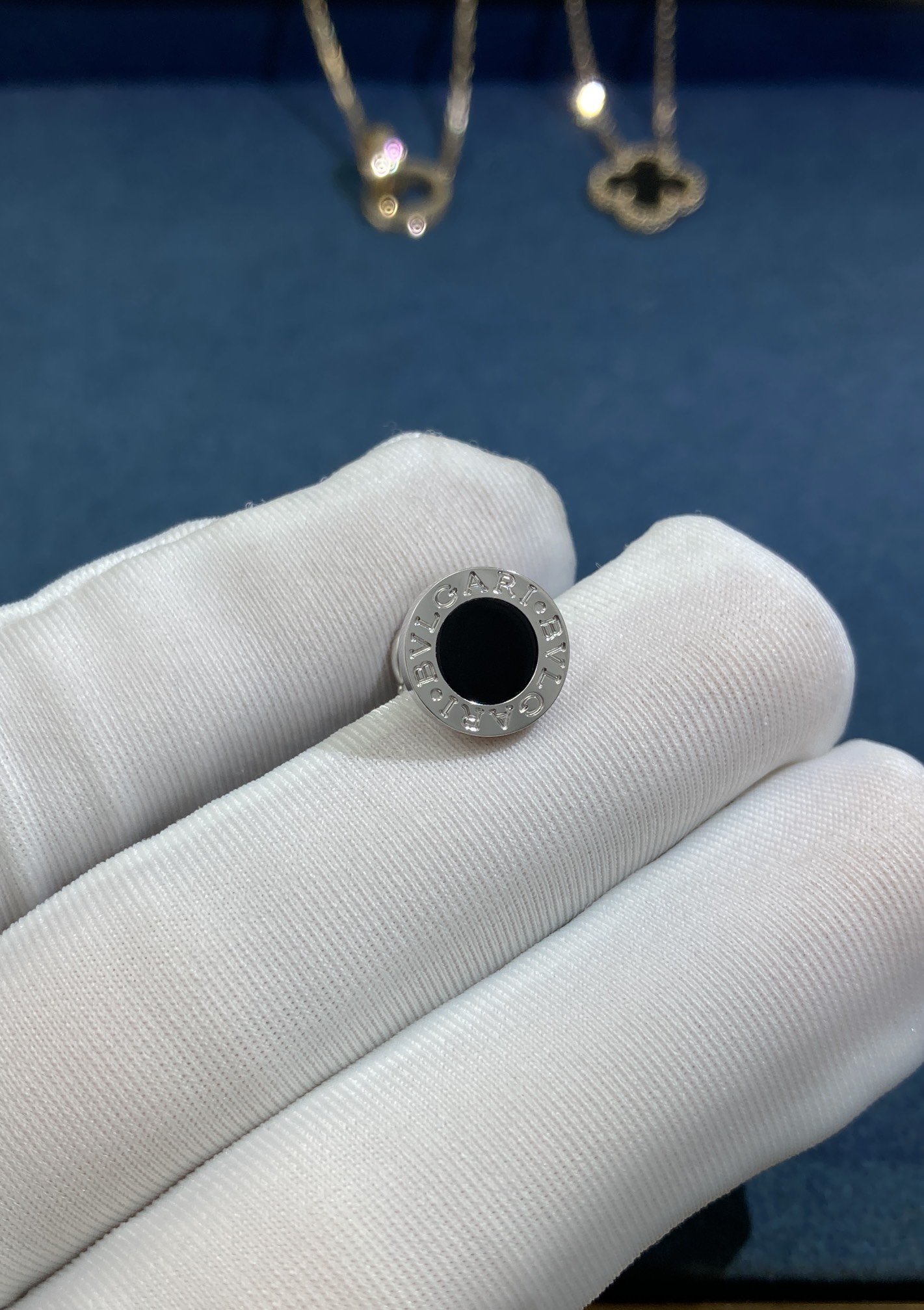 Bvlgary's Black Onyx Round Cake Earrings, White Gold