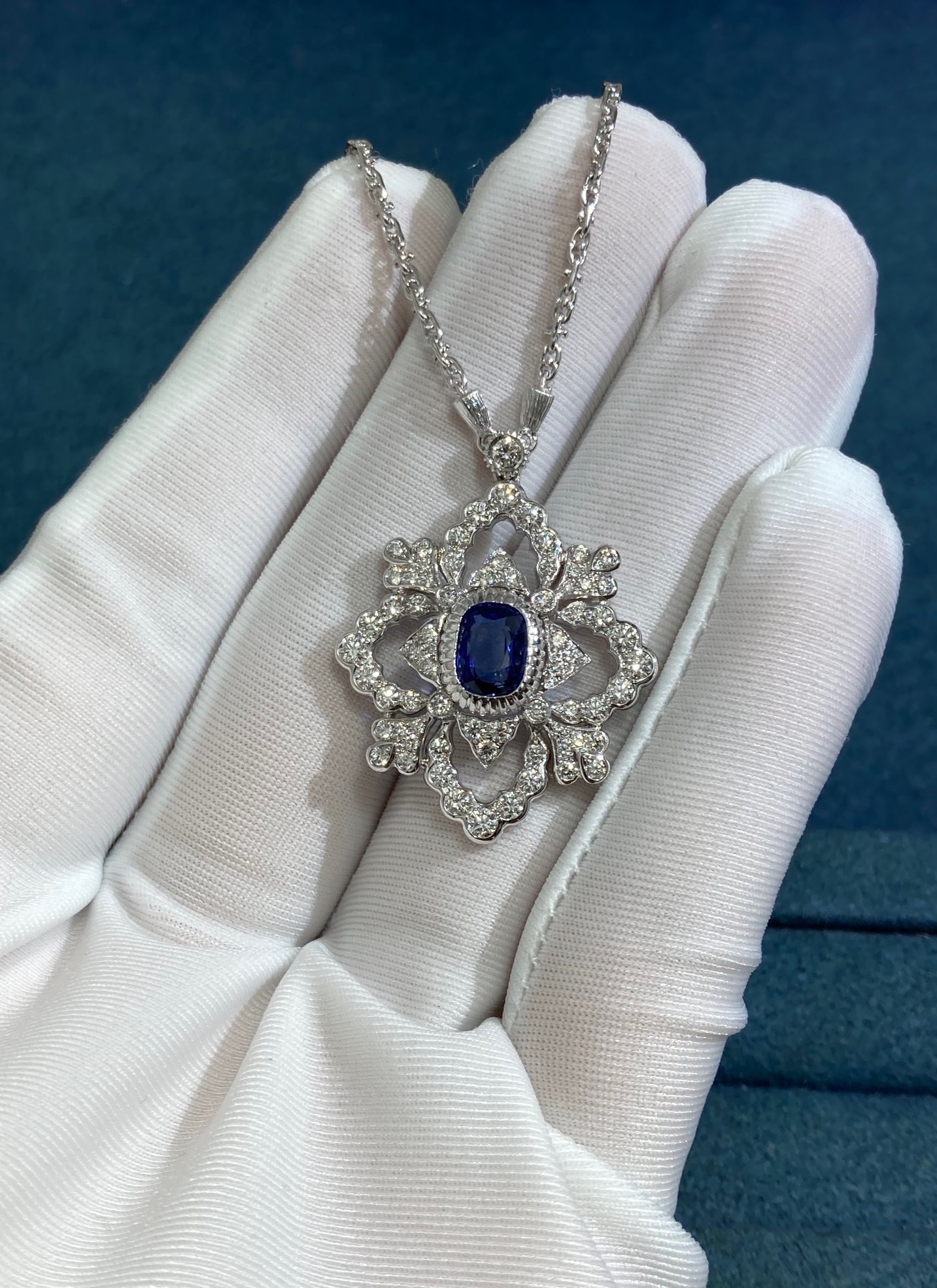 The metal used in pieces of jewelry are often a lustrous yellow or white gold, which is expertly polished to a mirror-like finish. The precious stones are carefully selected by our masters and set in a precise manner, showing off their color, clarity, and brilliance to their full potential.