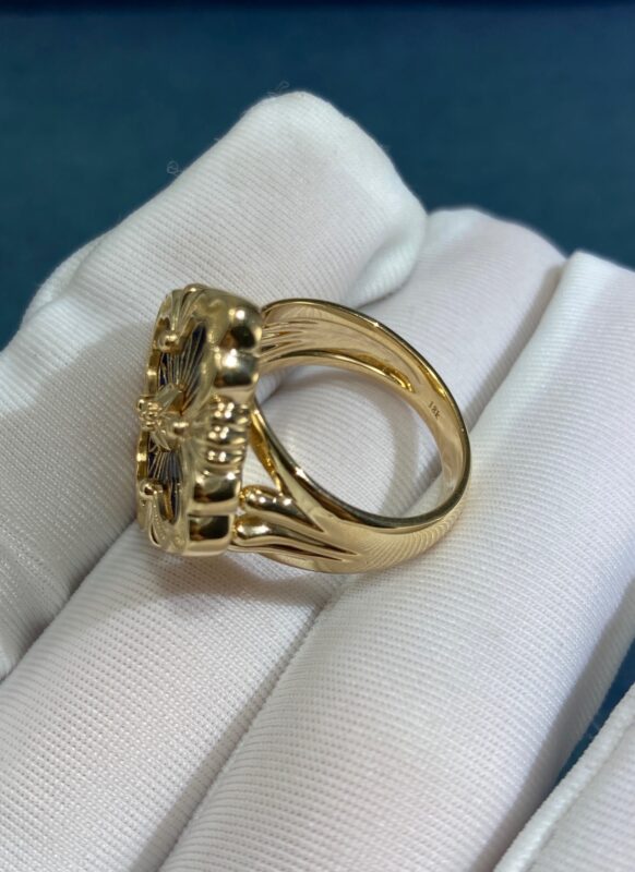 The metal used in pieces of jewelry are often a lustrous yellow or white gold, which is expertly polished to a mirror-like finish. The precious stones are carefully selected by our masters and set in a precise manner, showing off their color, clarity, and brilliance to their full potential.