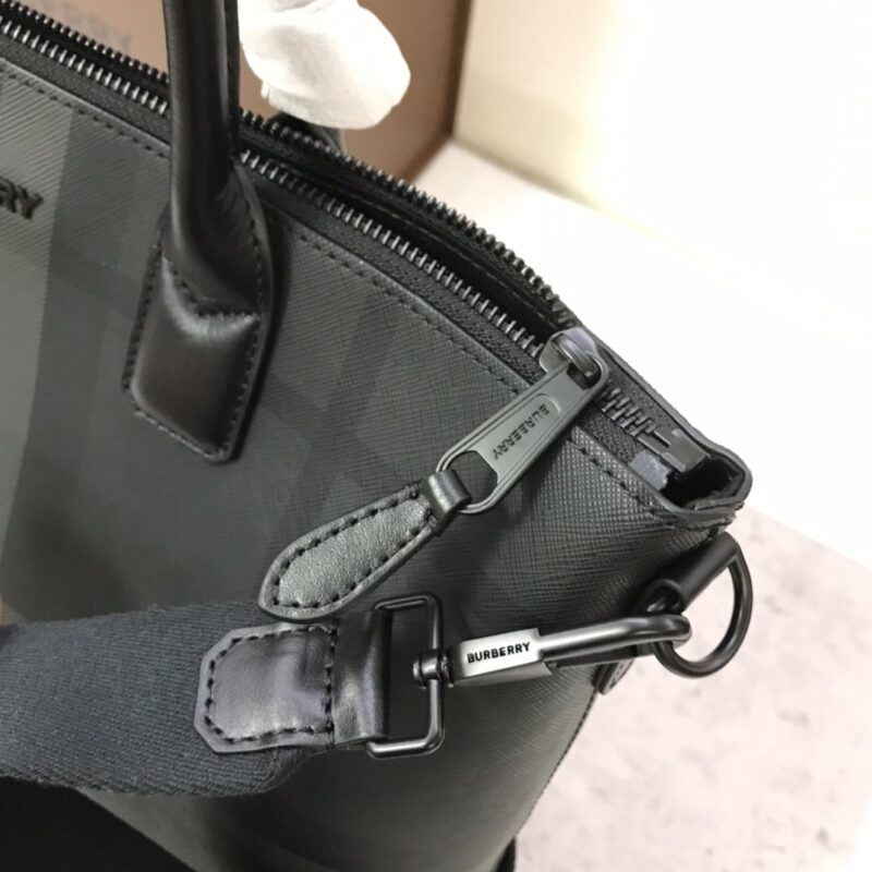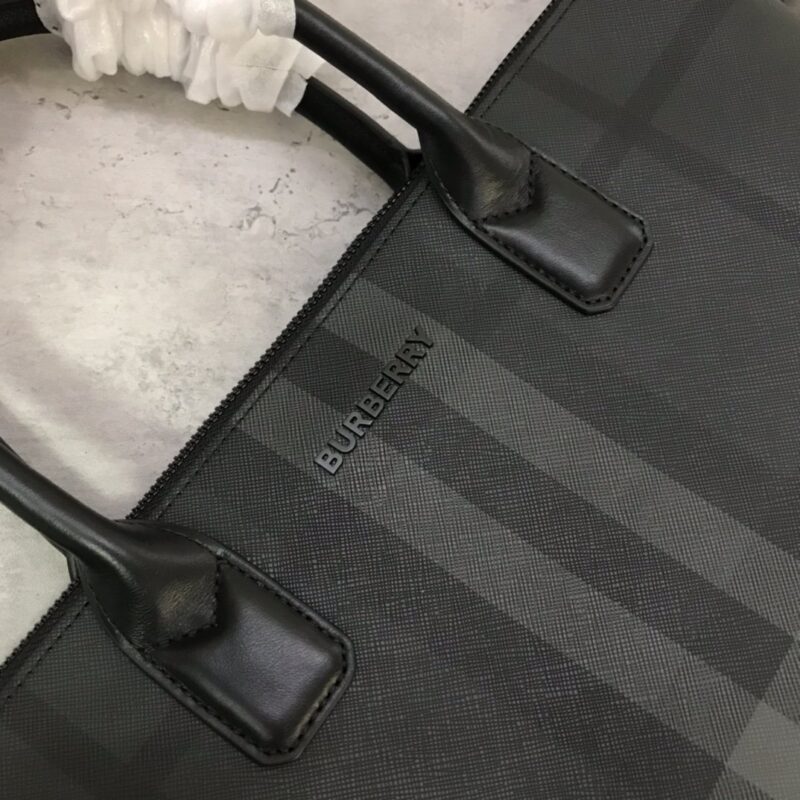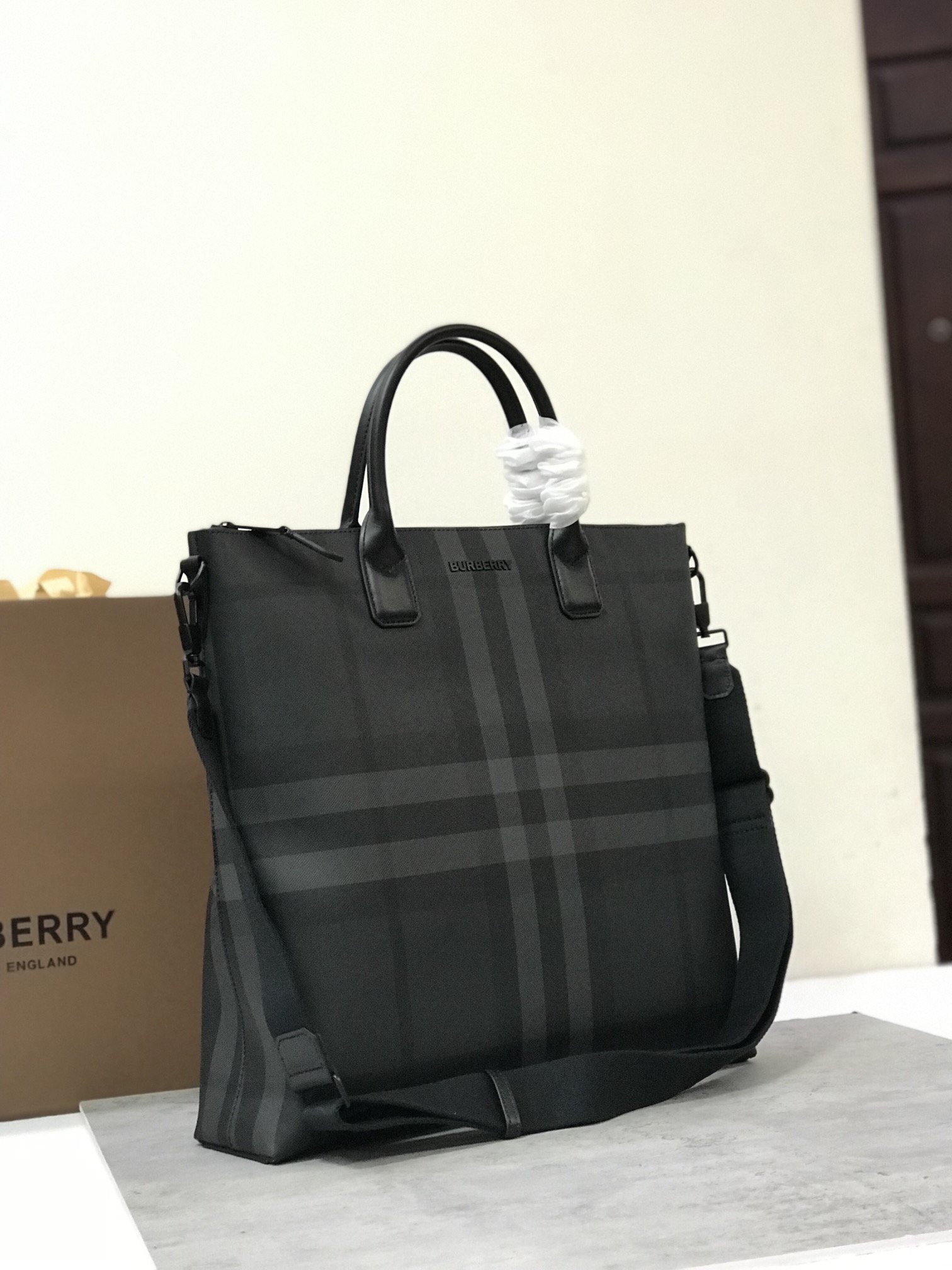 Original single B’s slim zippered tote bag, embellished with brand charcoal gray check design, with leather decoration and tonal logo design. At least 30% of the main materials in this piece are bio-based. Bio-based materials are mainly derived from renewable natural resources such as plants and castor oil. 39 x 12 x 38 cm. Carrying handle Vertical wearing height: 14 cm. Detachable and adjustable shoulder strap. 1 zipped interior pocket. Laptop compartment. Zip closure. Hand painted edges. Glossy metal hardware. Burberry on the front three-dimensional letter logo