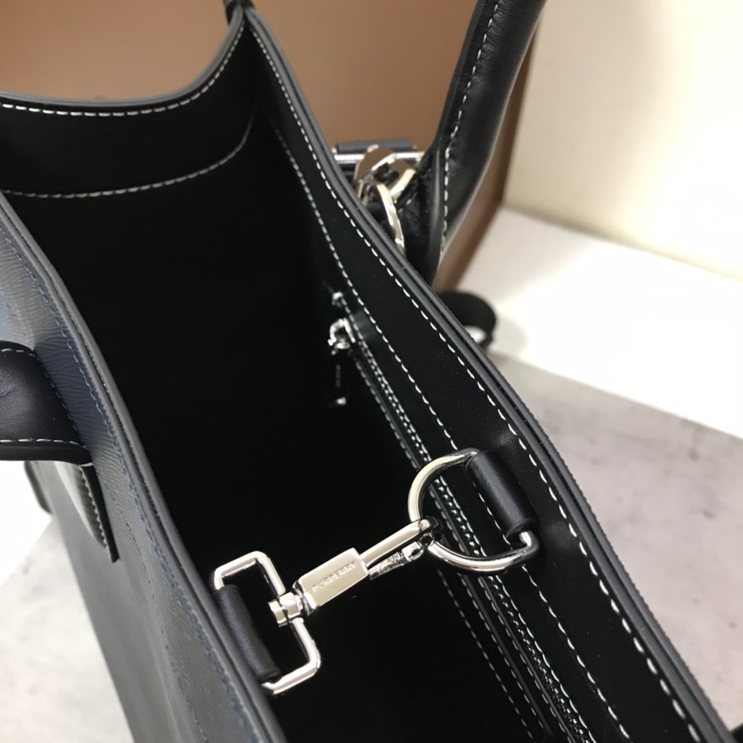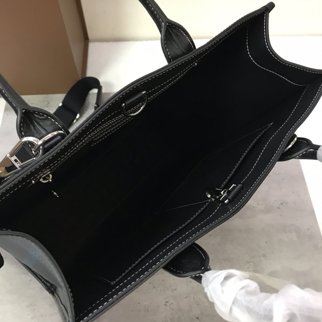 Original order B’s tote bag with ample space is made of large check panels and topstitched leather, and is vibrantly decorated with the brand’s logo in the same color. The detachable and adjustable shoulder strap enhances practicality. 35.5 x 15 x 37.5cm handle Vertical wearing height: 14cm. Top rolled leather handle. Detachable and adjustable shoulder strap. 1 interior zip pocket; 2 interior slip pockets. Snap closure. Hand-painted painted edges. Gloss Metal hardware. Burberry lettering embossed on the front
