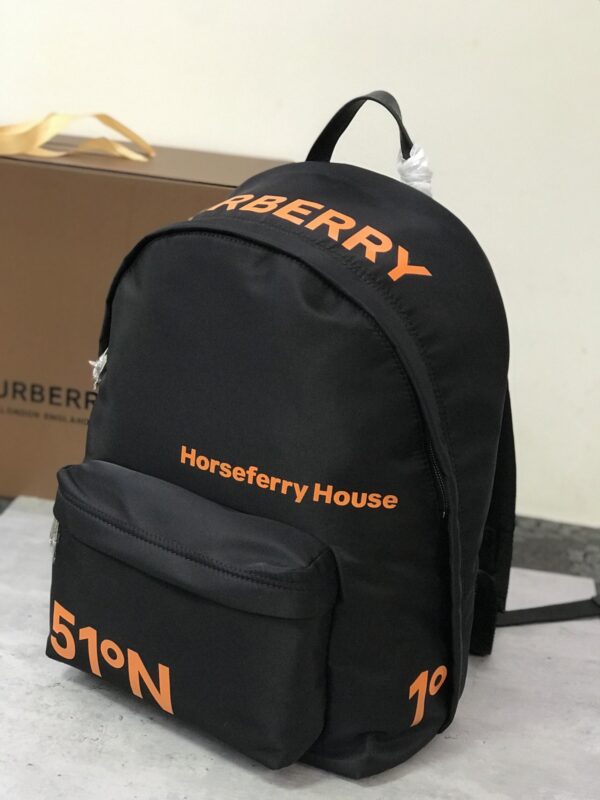 Original single B’s shoulder bag, made of selected ECONYL® material ECONYL® is a sustainable nylon fabric made from recycled fishing nets, fabric waste and industrial plastics. With a coordinate printing design, the inspiration comes from the address of the brand’s global headquarters in Westminster, London. 30.5 x 14.5 x 42.5cm top handle; adjustable shoulder straps. 2 exterior zipper pockets; 1 interior zipper pocket. Laptop compartment. Two-way zip closure. Glossy metal hardware. Back quilted trim