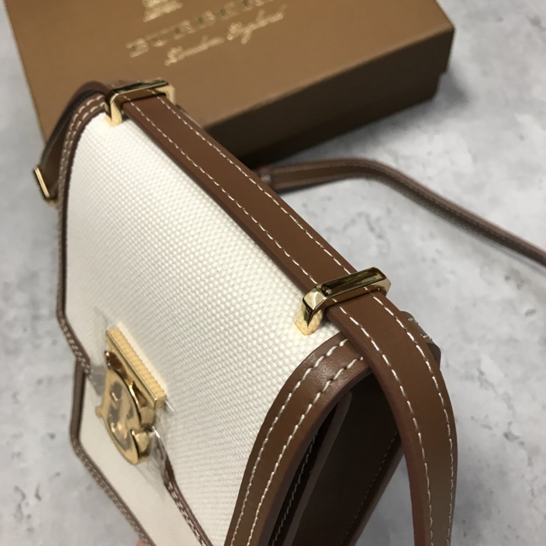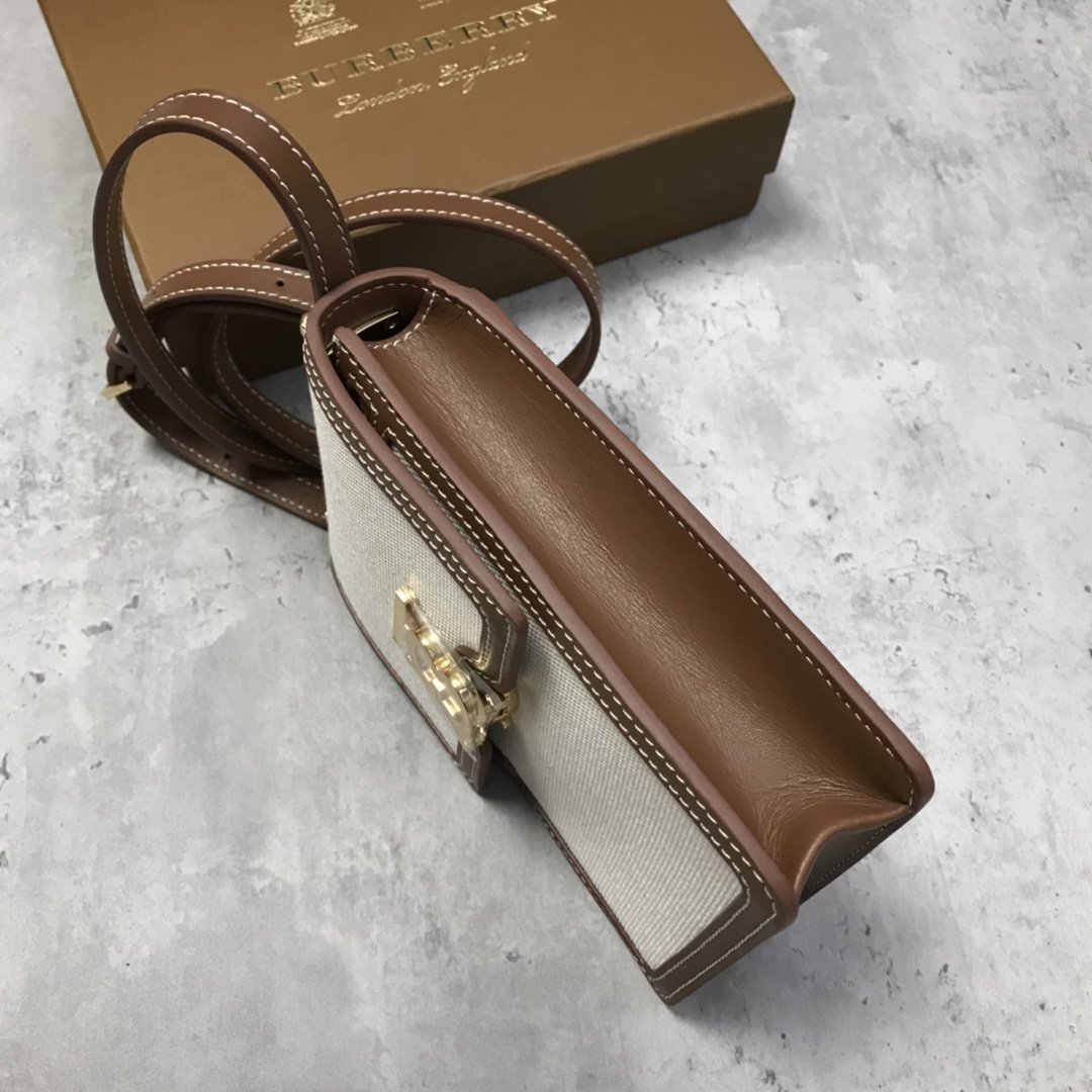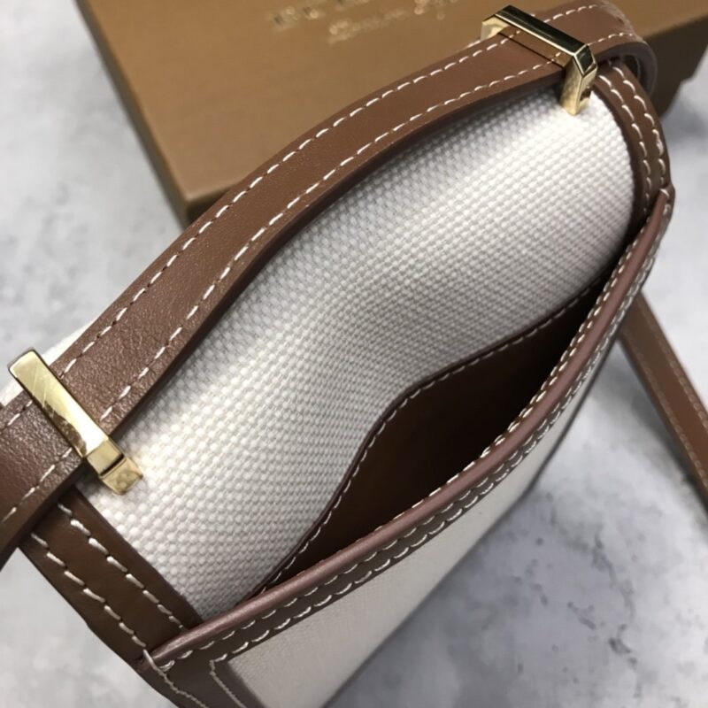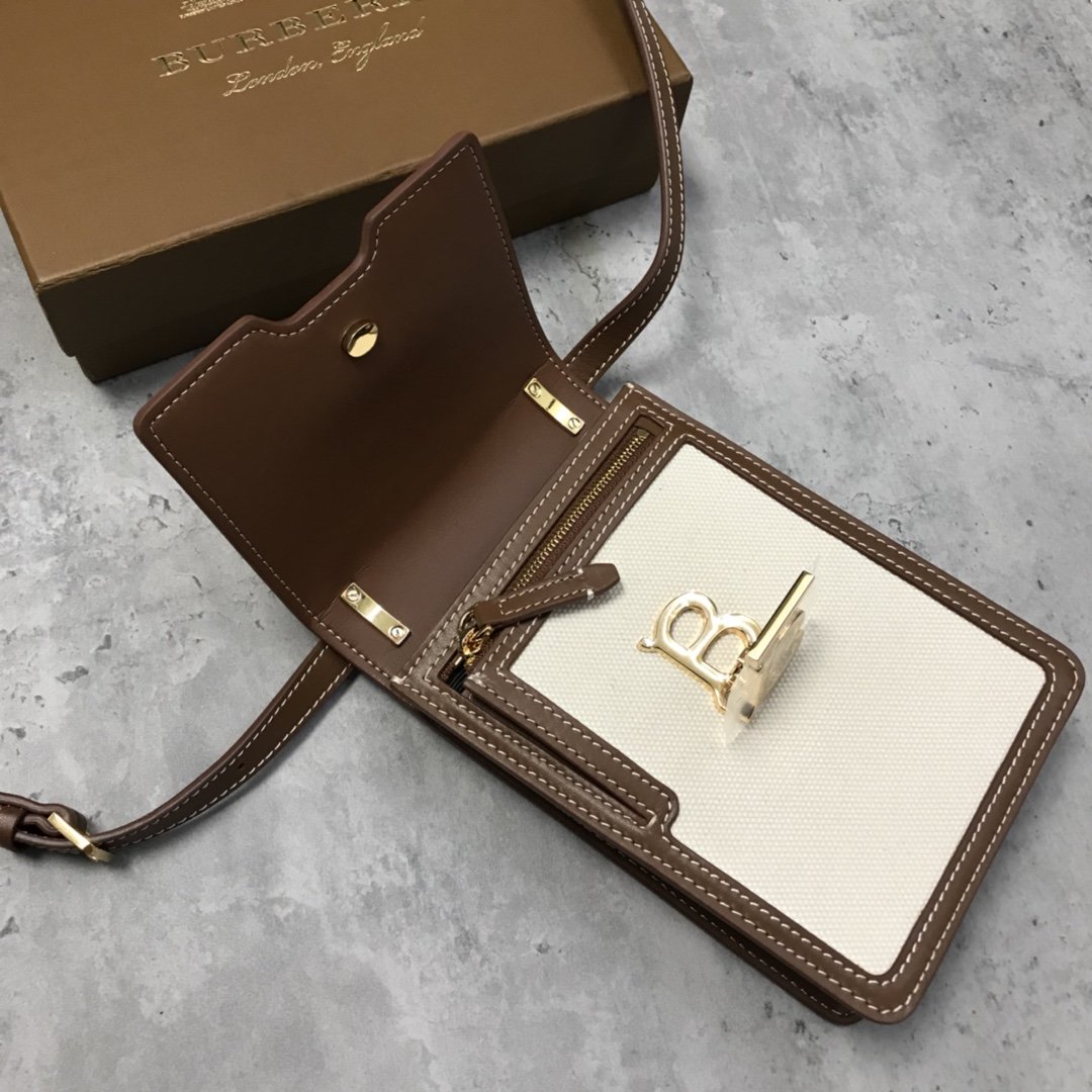 [B’s Top Original Order] The compact and upright “Robin-Robin Bag” is made of cotton canvas and topstitched leather, and the lock is decorated with the exclusive logo inspired by Thomas Bur. It can be worn on the shoulder, cross-body, or as a clutch bag. Roomy enough for phones of all sizes. Dimensions: 13.5 x 4.5 x 19cm. Detachable and adjustable leather crossbody strap. 2 inner card slots