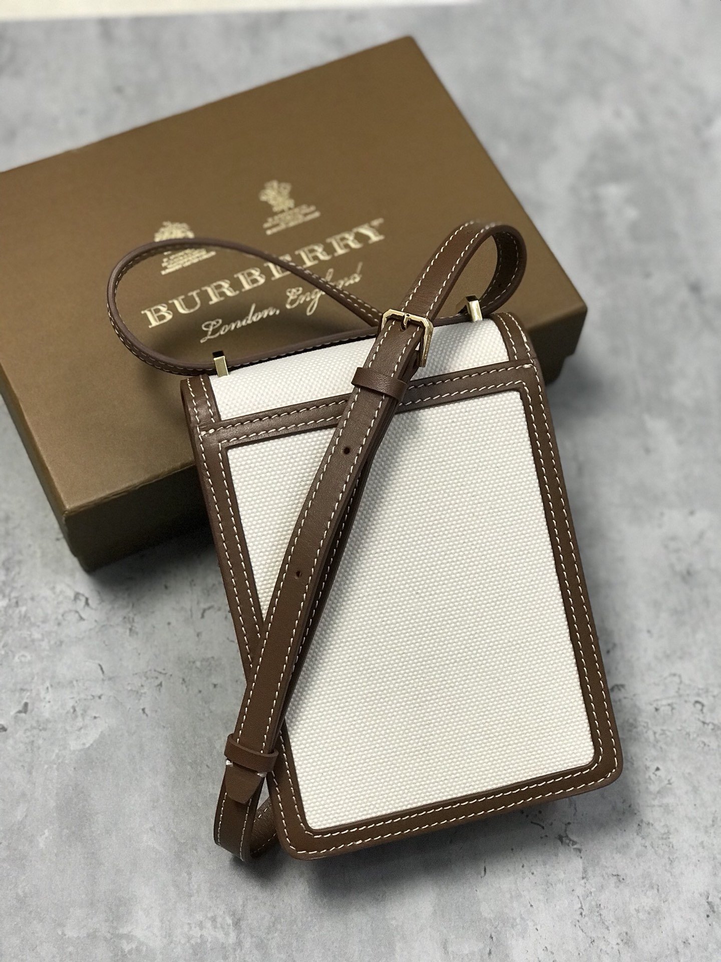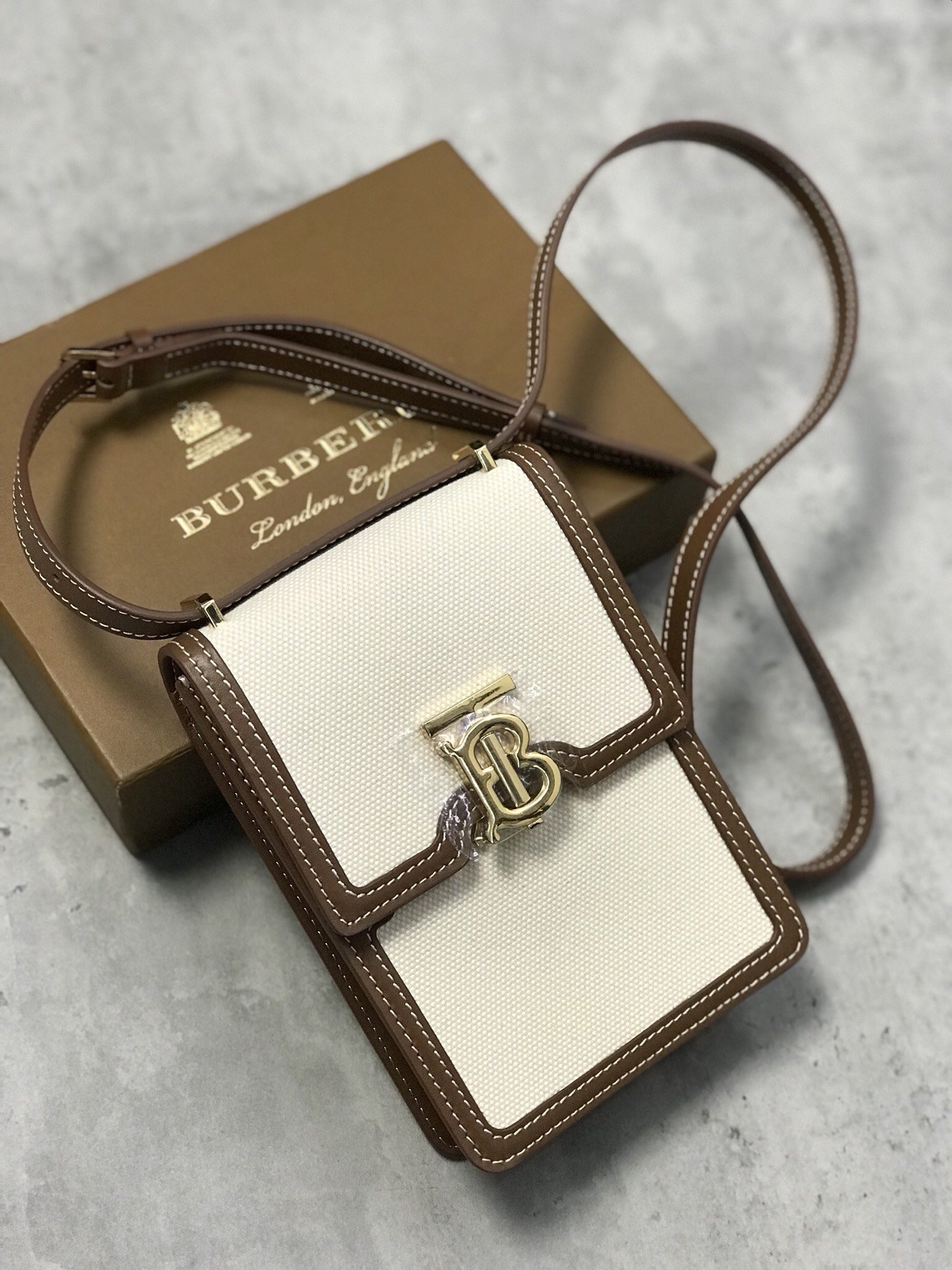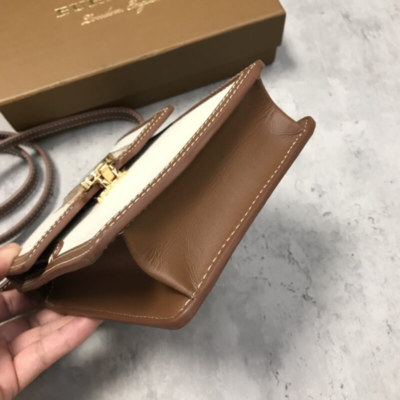 [B’s Top Original Order] The compact and upright “Robin-Robin Bag” is made of cotton canvas and topstitched leather, and the lock is decorated with the exclusive logo inspired by Thomas Bur. It can be worn on the shoulder, cross-body, or as a clutch bag. Roomy enough for phones of all sizes. Dimensions: 13.5 x 4.5 x 19cm. Detachable and adjustable leather crossbody strap. 2 inner card slots