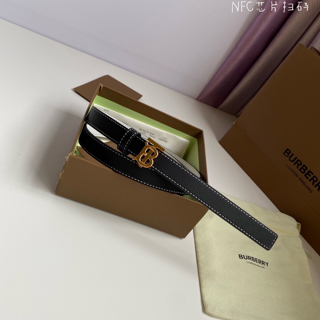Burberry Gold TB Buckle Double-sided Leather Belt