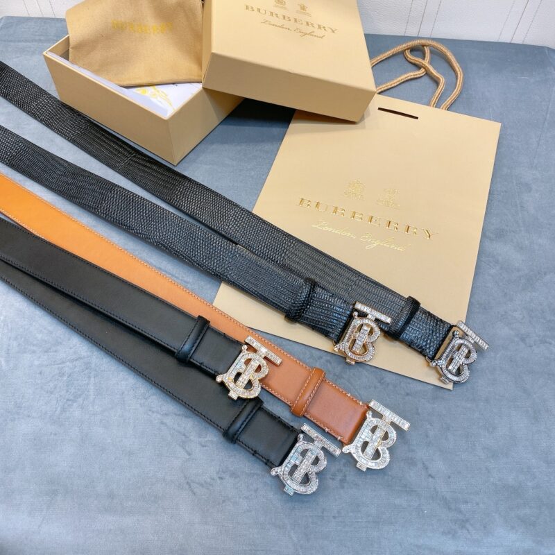 Burberry Rhinestone Decorated TB Buckle Leather Belt