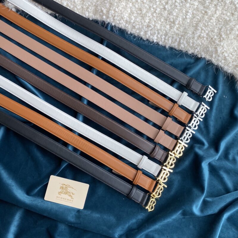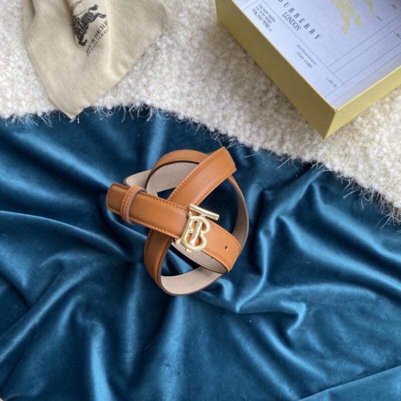 Burberry Italian leather belt. Buckle with striking gold-plated monogram graphic. 2cm wide. 24088589
