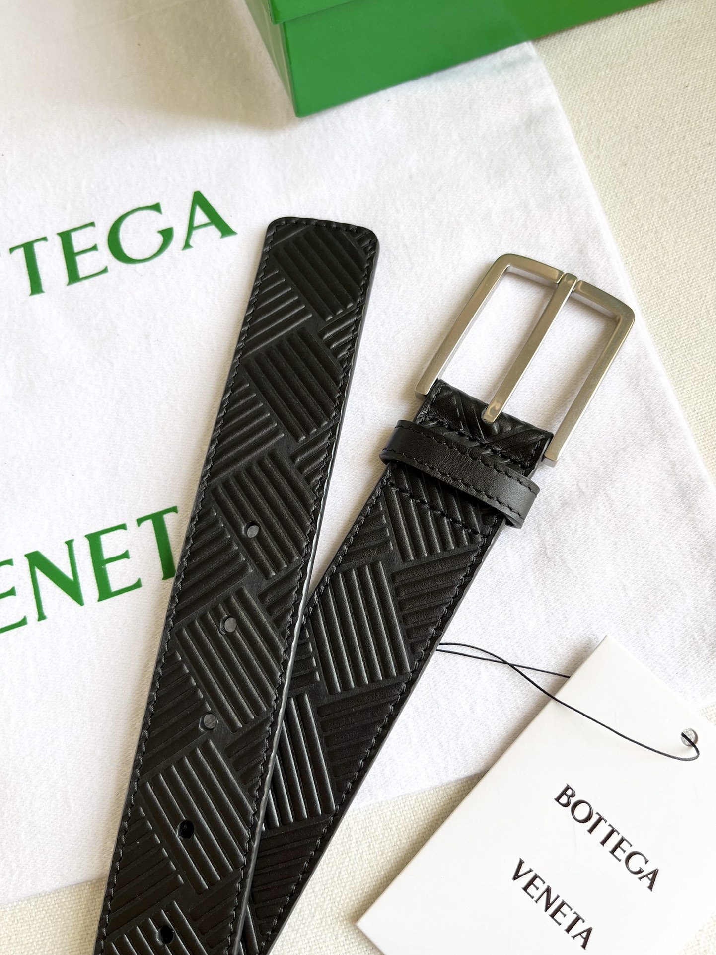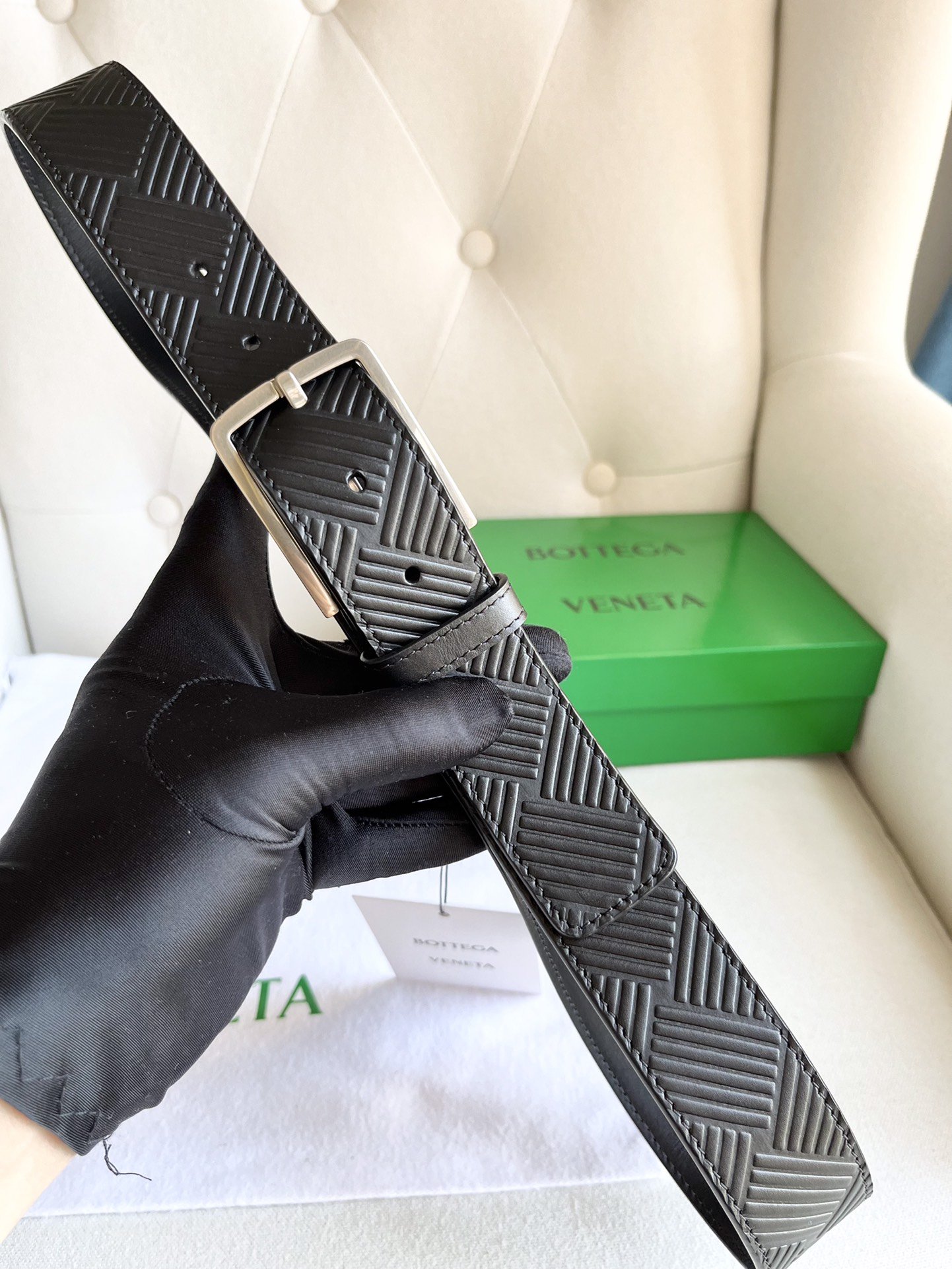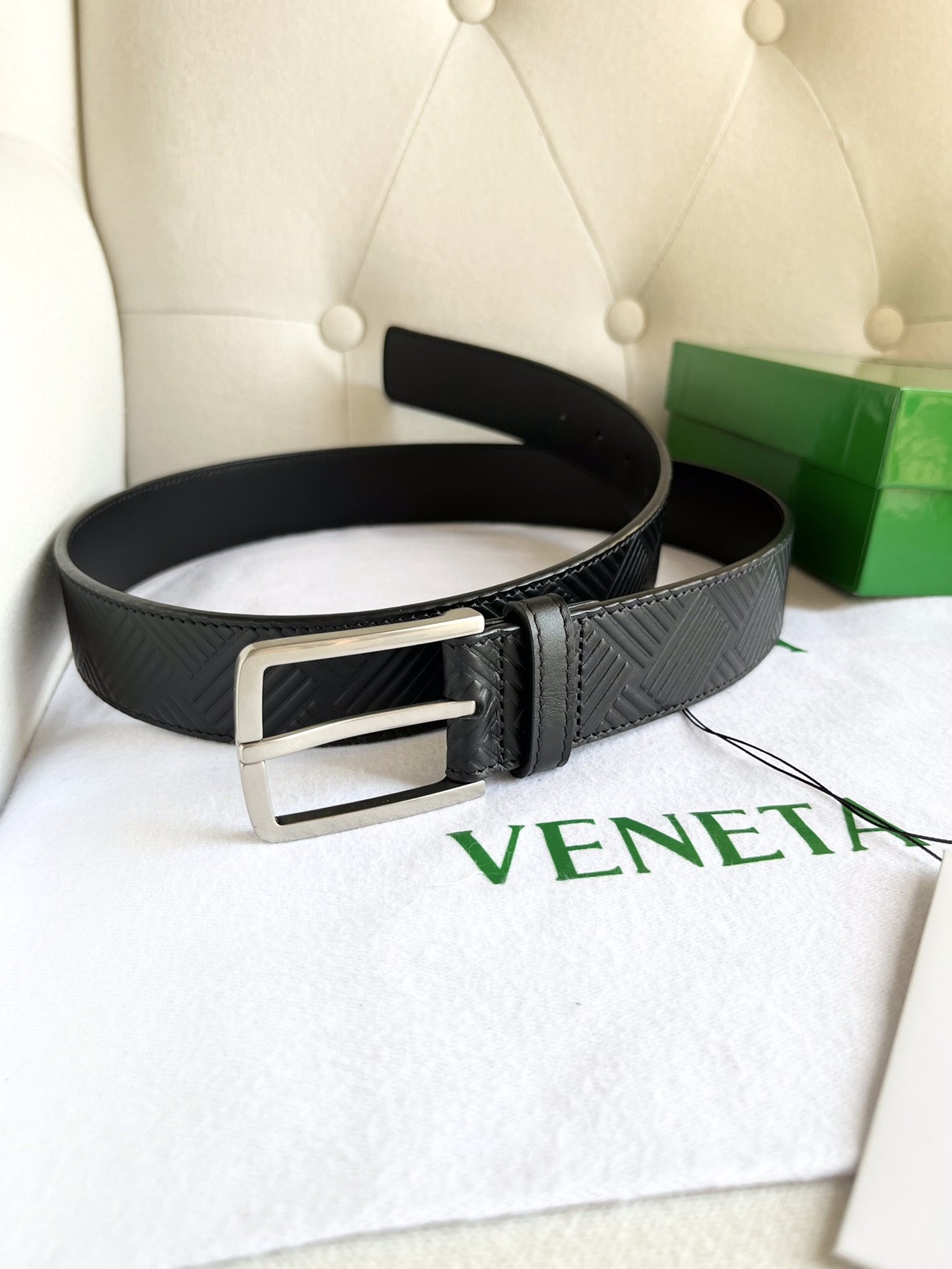 New 2024 men’s belt, intreccio calfskin with vintage silver copper pin buckle, BV logo on the side, belt width 35cm