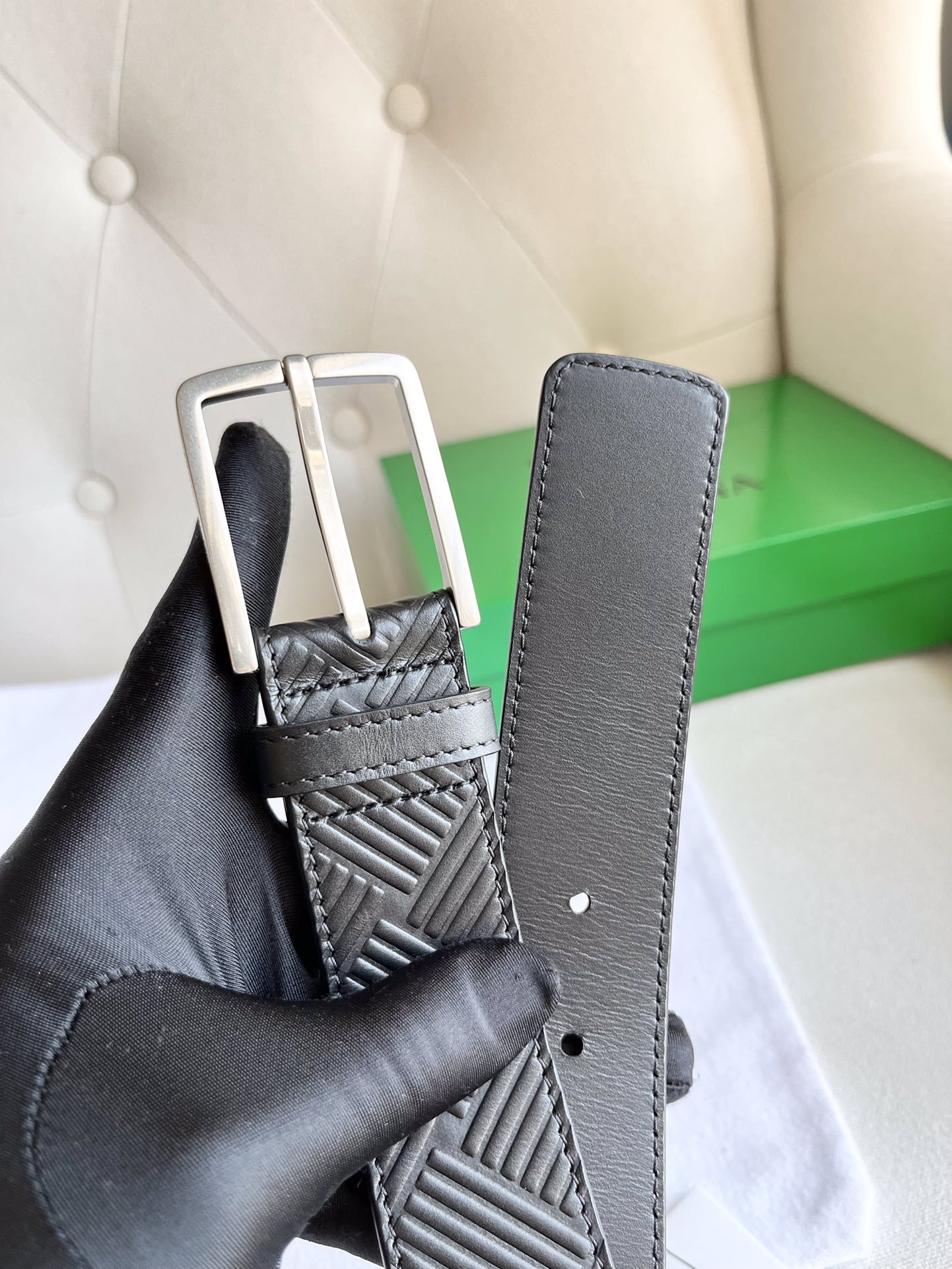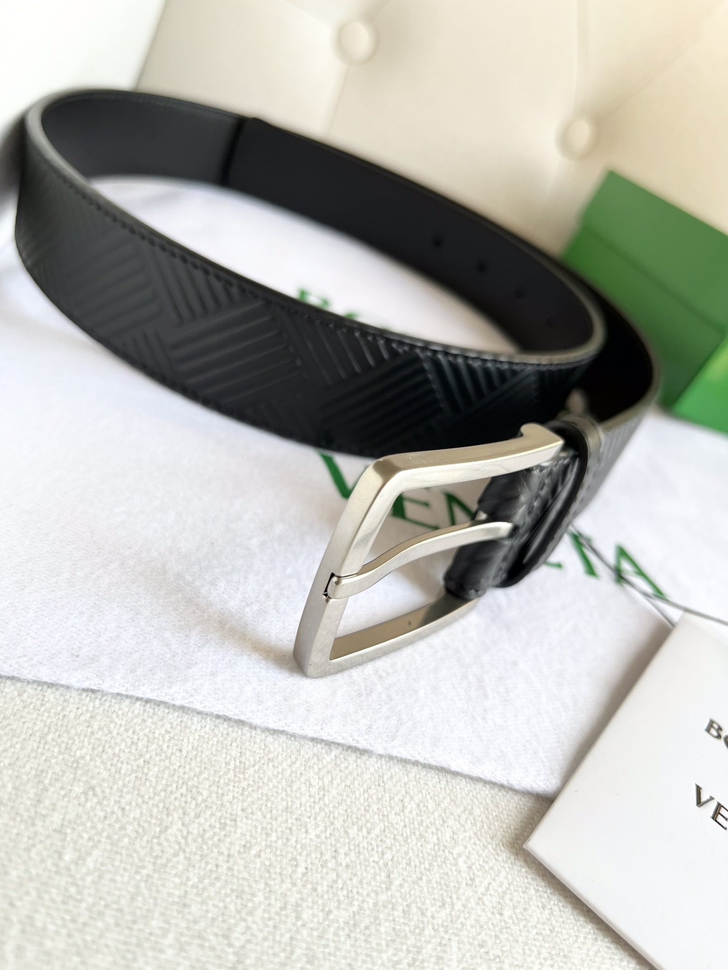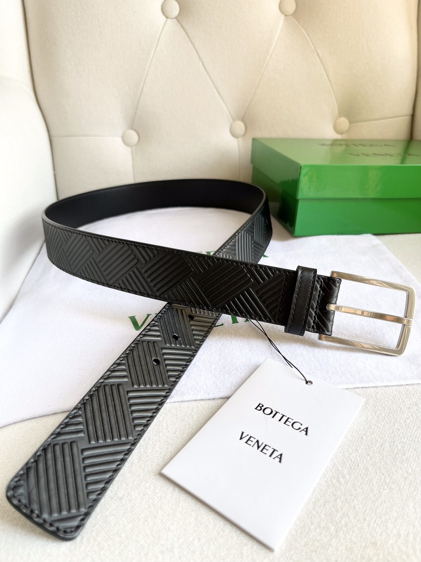 New 2024 men’s belt, intreccio calfskin with vintage silver copper pin buckle, BV logo on the side, belt width 35cm